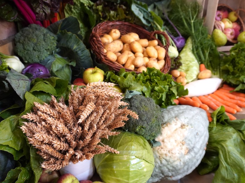 Kartoffeln, Karotten, Kohlrabi, verschiedene Kohlsorten, dazu Radi, Äpfel, Brokkoli und Birnen liegen rechts und links kunstvoll drapiert auf den Stufen zum Altarraum von St. Theresia. In der Mitte dominiert die beeindruckende Erntekrone das üppige Arrangement, das an Gemälde großer Meister längst vergangener Tage erinnert. Die opulente Dekoration ist ein letztes Werk, wenn man so will, von Helga Lipka. „Ich habe das 42 Jahre lang gemacht und bin jetzt in einem Alter, da denke ich mir, dass ich das jetzt abgeben darf“, erklärt die aktive Brauchtumspflegerin: “Ich möchte das jetzt in jüngere Hände übergeben.“
