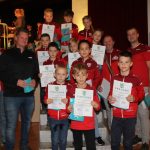 Nach diesem unterhaltsamen Zwischenspiel folgte der Höhepunkt der Veranstaltung. Die Athletinnen, Athleten und ihre jeweiligen Trainer und Mannschaftsführer wurden einzeln bzw. als gesamte Mannschaft auf die Bühne gebeten und erhielten jeweils eine Urkunde und ein Geschenk.