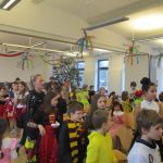 Der große Mehrzwecksaal wurde ausgeräumt, um Platz für allerlei Bewegungs- und Tanzspiele zu schaffen. Langeweile kam keine auf bei „Stopptanz“, „Luftballon – und Zeitungstanz“, wurden doch immer mal wieder Kamelle in die Kindermenge geworfen.