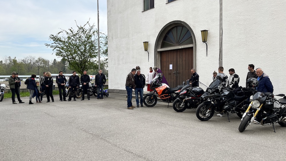 Am Samstag den 30. April fand um 10 Uhr vor der Kirche in Birkeneck die erste Motorradweihe der Mooskoimroaser Hallbergmoos statt. Der Einladung waren fast 80 Motorräder gefolgt. Nachdem Pfarrer Thomas Gruber den Segen erteilte , ging es anschließend auf einer Runde durch den Ort. Danach traf man sich zum gemütlichen Weißwurstfrühstück.