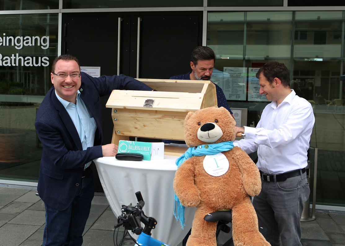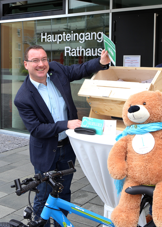 Mit dem richtigen Lösungssatz „Herz und Solidarität für Gastronomie und Einzelhandel“ konnten die 564 Teilnehmer in diesem Jahr auf einen der tollen Gewinne hoffen. Die Verlosung musste wegen der Corona Pandemie, leider genau wie die Radlrallye selbst, ungewohnt anders stattfinden. Ohne die Aufregung und dem tobenden Applaus der sonst so vielen anwesenden Radlern der Vorjahre, aber zumindest an gewohnter Stelle, dem Rathausplatz.