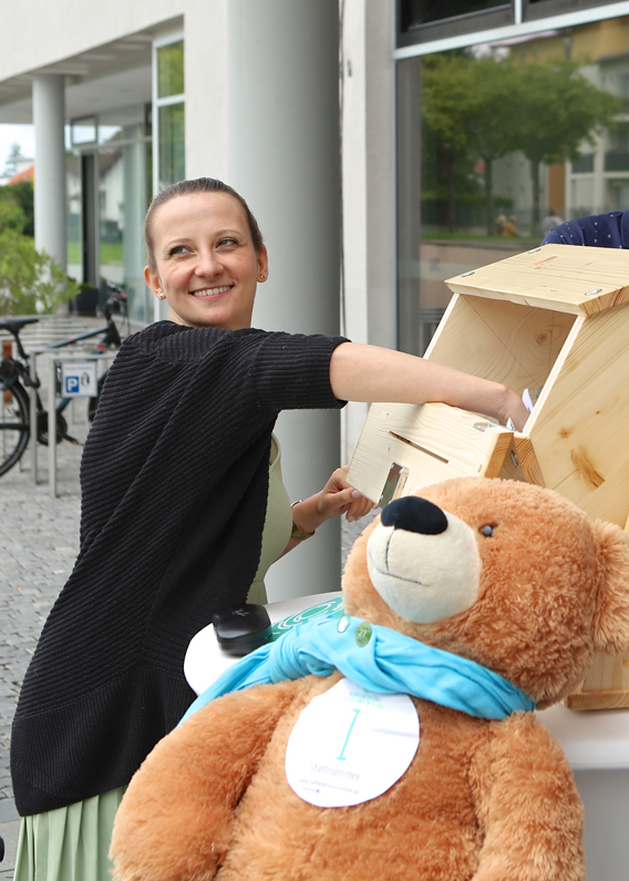 Dann wurde es noch einmal richtig spannend, denn nun sollte Julia Hollmer auch die drei Hauptgewinne aus der Lostrommel ziehen. Sichtlich erfreut über ihren neuen Job als Glücksfee zog sie nach und nach die drei Hauptpreisgewinner. Neben dem 3. Preis, einer Sonnenbrille und den AirPods als 2. Preis, wurde dann auch das nagelneue und schicke Mountainbike als Hauptpreis an seinen neuen Besitzer gebracht. Karin Hettenkofer, zweite Vorsitzende und Pressesprecherin der WGHiA wurde nun die wichtige Aufgabe zu Teil, nicht nur die Lösungssätze vor Ort unter der dafür vorgesehenen Schablone zu prüfen, sondern auch die Gewinner persönlich zu benachrichtigen. Denn gleich alle 564 Lösungskarten wanderten in diesem Jahr in die Lostrommel. Erst bei der Ziehung wurde der Lösungssatz mit Hilfe der Schablone geprüft. Somit hatte jeder eine Chance auf den Gewinn, auch wenn es hier und da mal einen Buchstabendreher gab.