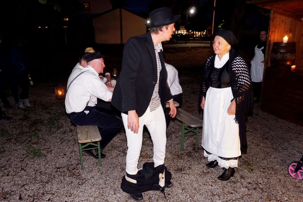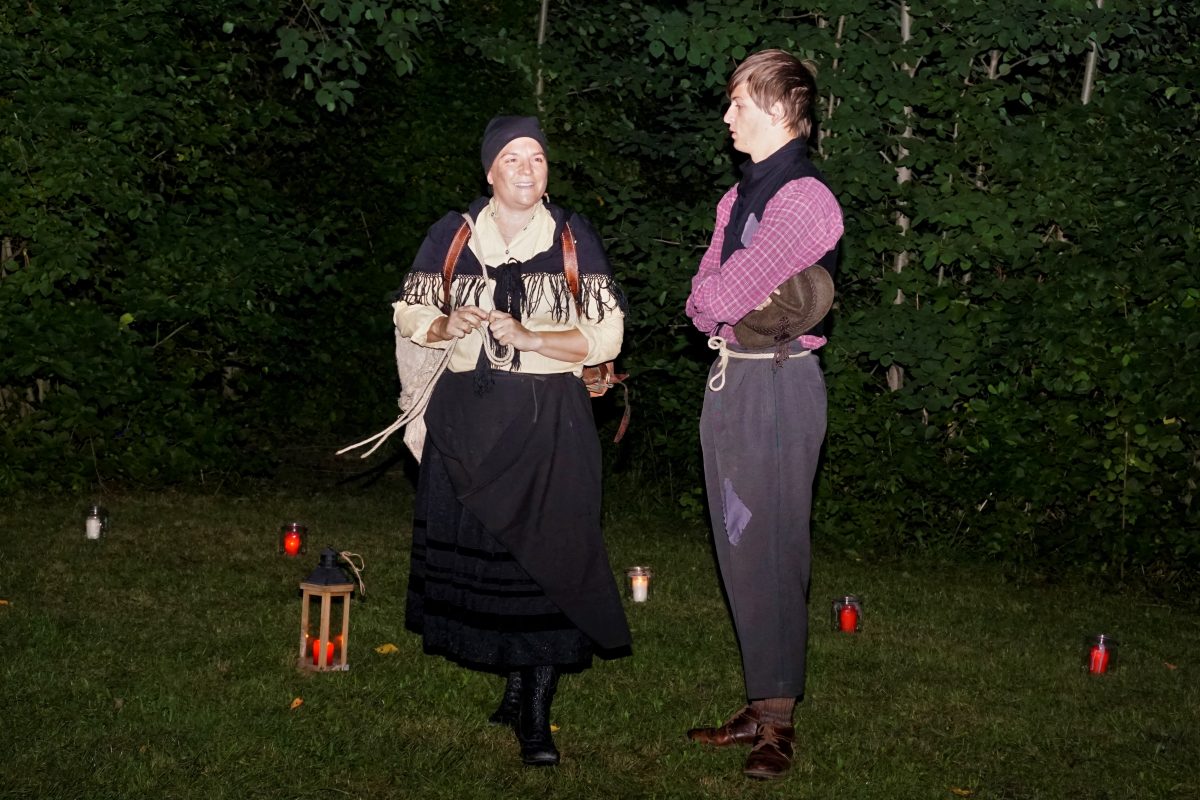 Beim ehemaligen Kaindl hat es sich „ausgefannyleint“ macht Fanny (Karin Troidl) Lugge (Markus Streitberger) und den Zeugen der Szene unmissverständlich klar, bevor sich am Friedhof bei nicht wenigen der Wanderer durch die Nacht, die Nackenhaare aufstellen, denn: Erbsenzählen kann tödlich sein! Marei (Franziska Karl) kann das unheilvolle Treiben der Heilmeierin (Gisela Edelmann) bezeugen. „Bis auf ein kleines Detail habe ich mich wegen der Dramaturgie am wirklich stattgefundenen schrecklichen Vorfall orientiert. …“, erklärt „Schuki“ und zieht Bilanz zur ersten Nachtwächterwanderung: „Ich hatte die Idee schon lange vor Corona. Nicht alle in der Truppe waren anfangs total euphorisch, sogar kritisch, ob das klappen kann. Aber ich denke, wir konnten zeigen, dass es funktioniert. Wir sind ausverkauft, aber vielleicht bekommen wir Zusatztermine hin“. Der Nachwächter freut sich über die hörbare Begeisterung des Publikums, bevor der Gesang von Renate Schmidmeier und Uta Dattinger die müden Wanderer zur Nachtruhe begleiten: „ … ’s ist Feierabend, das Tagwerk ist vollbracht, ’s geht alles seiner Heimat zu, ganz sachte schleicht die Nacht.“