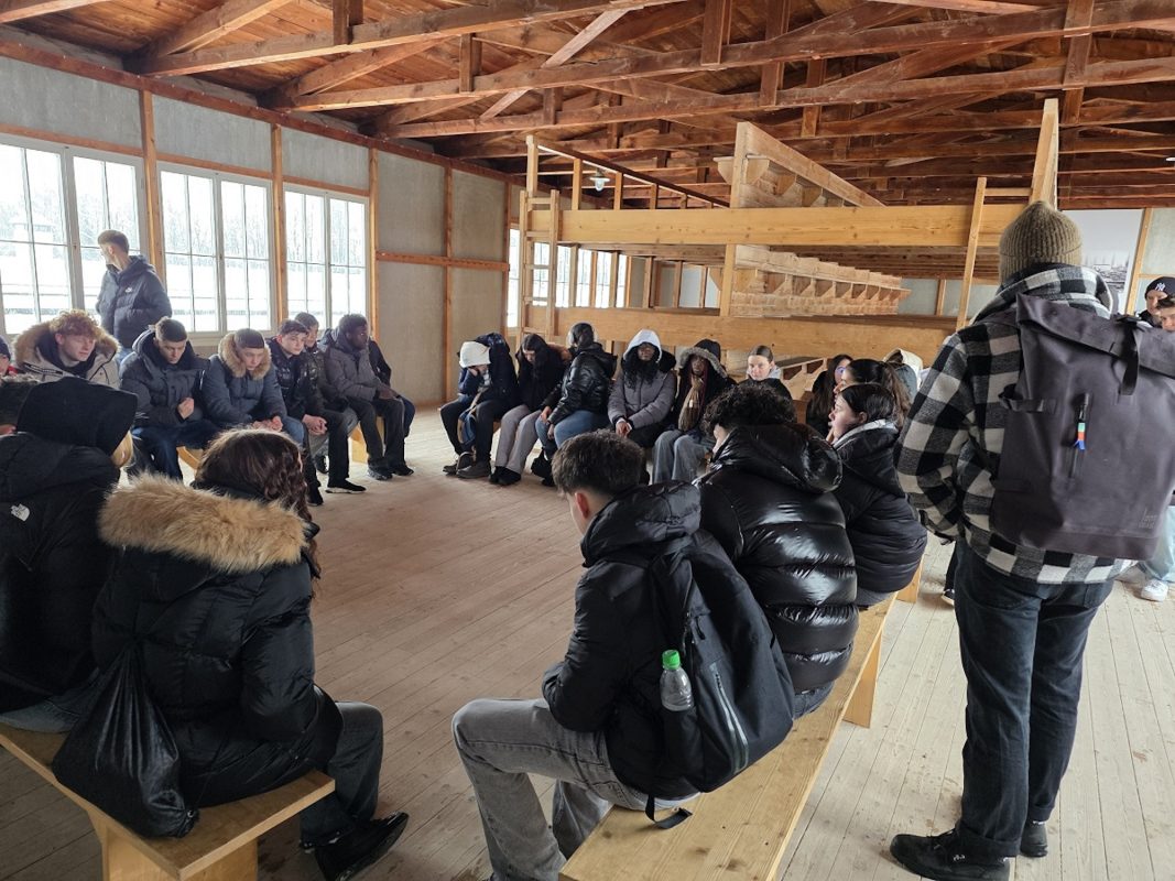 Während der dreistündigen Führung lag eine schneebedeckte Landschaft über dem Gelände, was die Atmosphäre zusätzlich unterstrich. Die Stimmung war durchgehend betroffen, und alle Schülerinnen und Schüler verhielten sich dem Ort und seiner Geschichte entsprechend respektvoll und aufmerksam.