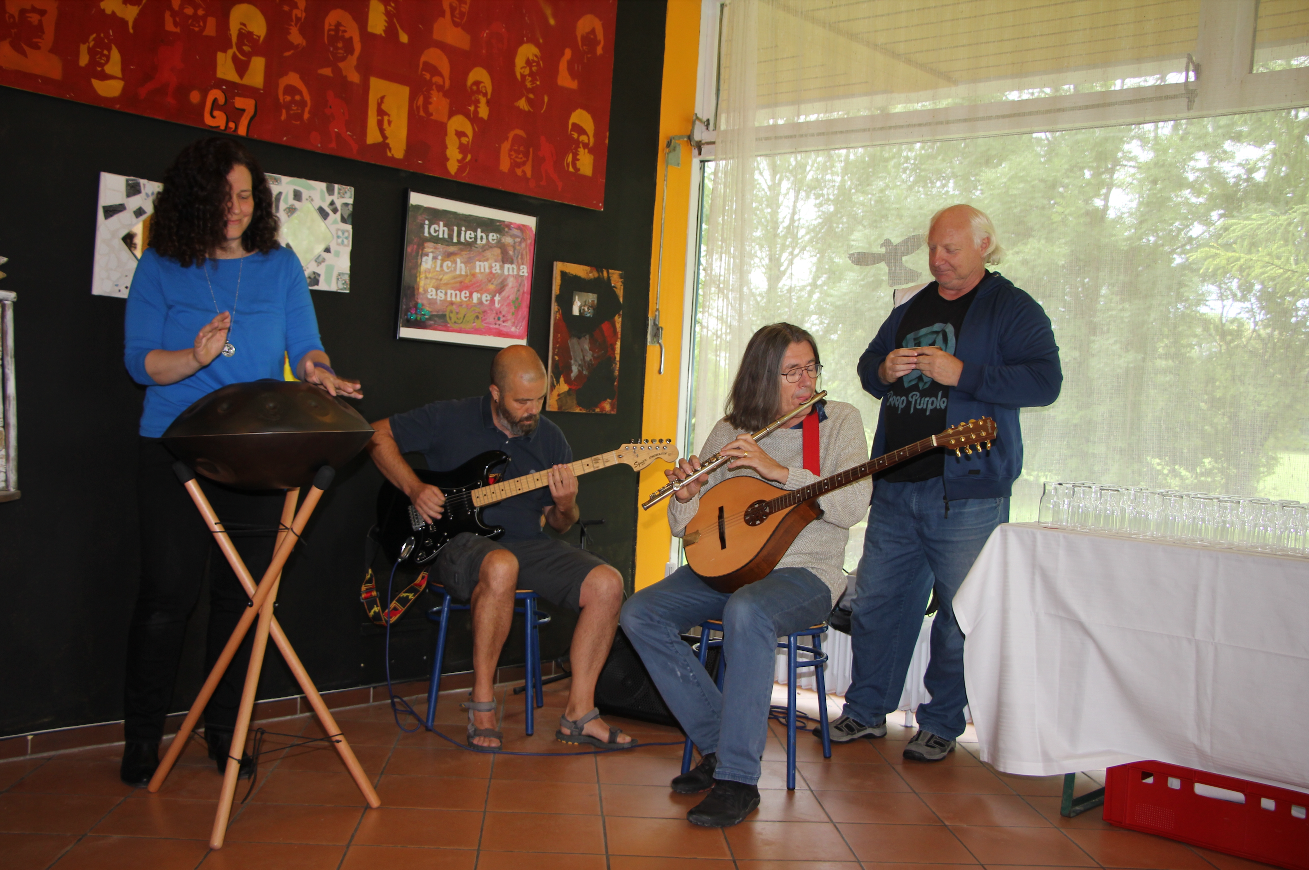 Am 1. Juli war es dann so weit und die Ausstellung wurde mit einer Vernissage eröffnet. Die Gäste wurden mit einer Musikimprovisation begrüßt, die – zart, leise und doch bewegend – gut zum Anlass passte und die Collagen, Skulpturen, Graffiti, Videos und Fotoarbeiten konnten besichtigt werden.