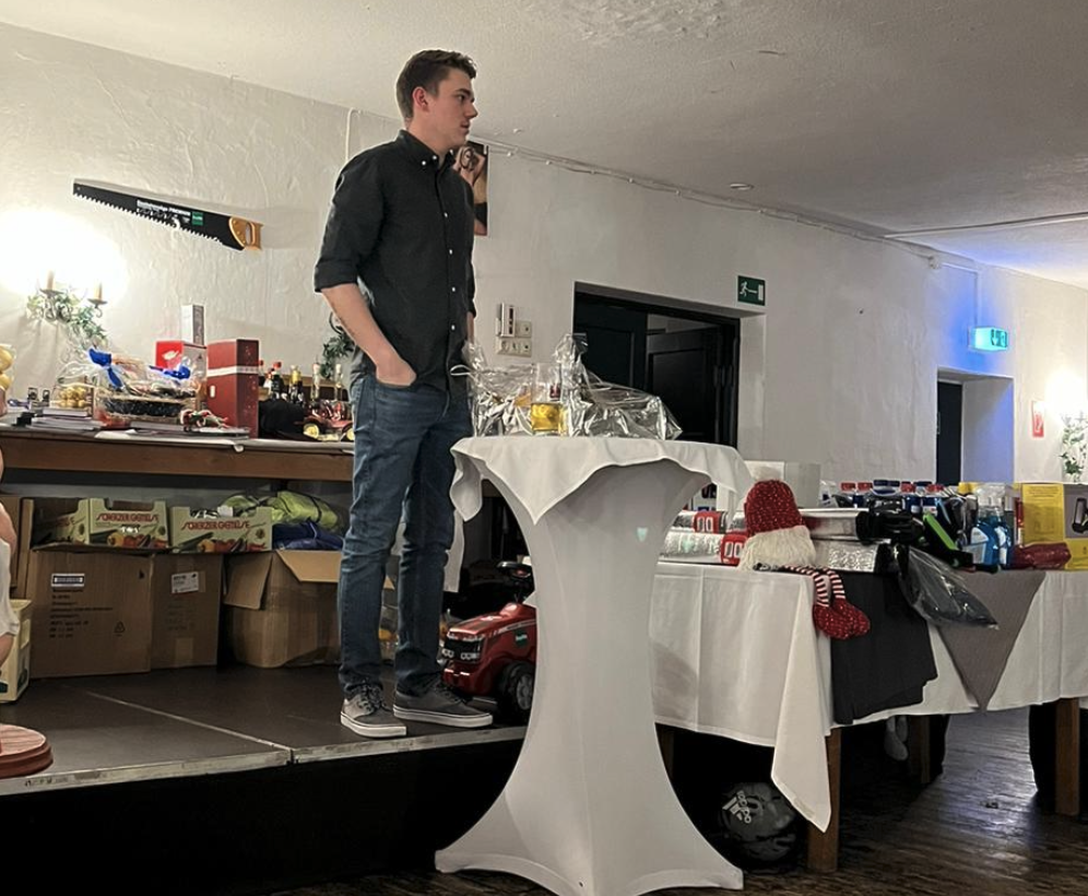 Wenn Versteigerer-As Niklas Weltmaier (Vorstand der Goldacher Burschen) bei der traditionellen Christbaumversteigerung zum Hammer greift, das Publikum lockt und die Gegenstände anpreist, als gäbe es kein Morgen mehr, dauert es nicht lange bis die Gebote der rund 80 Bieter im Alten Wirt eintrudeln, schließlich handelt es sich bei der „Ware“ um nichts Geringeres als großzügige Sachspenden und heißbegehrte Gutscheine: „Unsere Vereinsmitglieder sammeln in allen Hallbergmooser Firmen aber auch aus der Umgebung entsprechende Preise. Die versteigern wir zu Gunsten des Vereins“, erklärt Niklas Weltmaier.