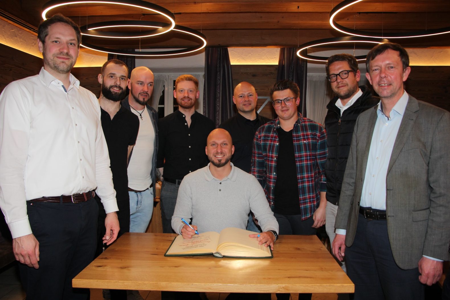 Große Ehre für die Kegler des VfB: Als Anerkennung für den Gewinn des NBC-Pokals darf sich die Mannschaft mit Kapitän Damir Cekovic in das Goldene Buch eintragen.