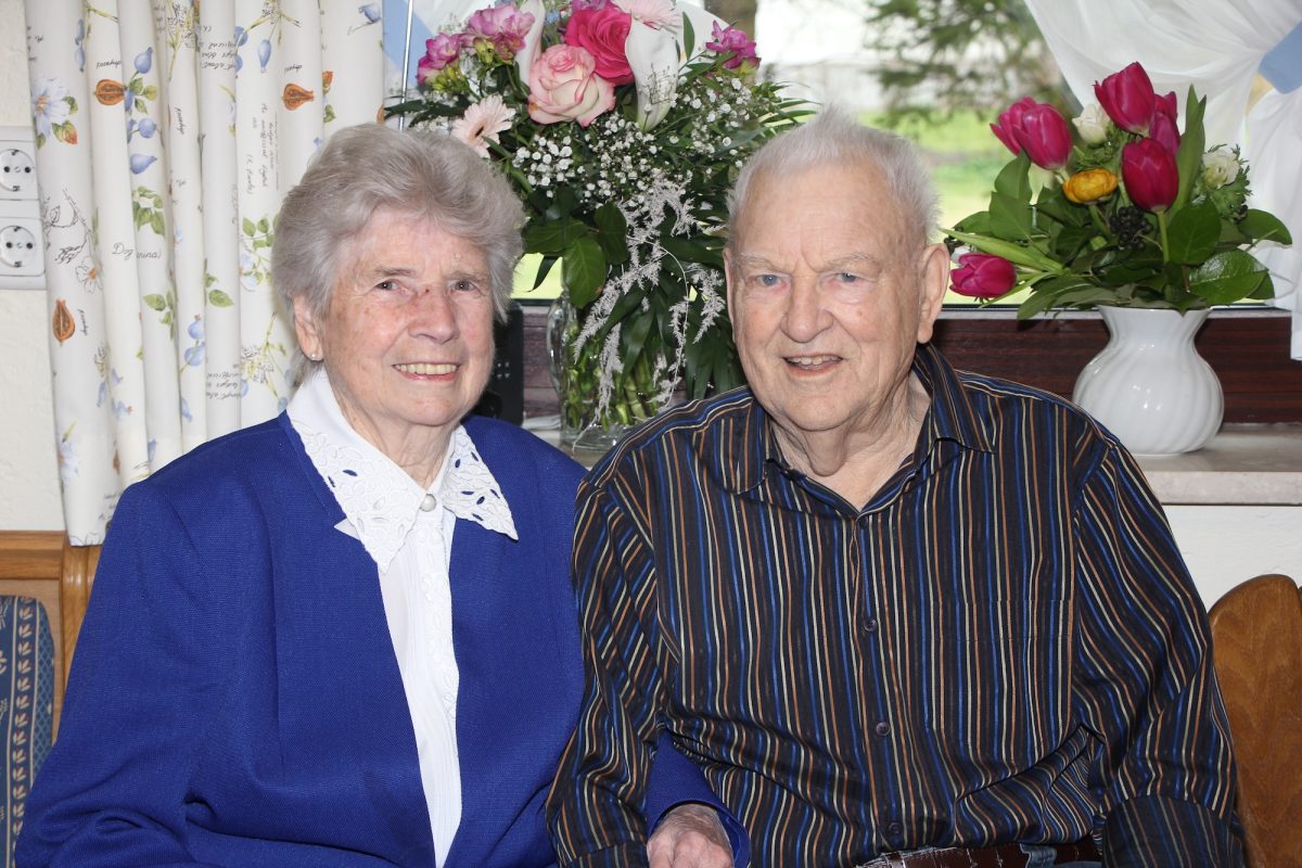 Geboren wurde Monika Wiesheu am 21. März 1941 in Lachen, einem Ortsteil von Dießen am Ammersee. Hier verbrachte sie auch ihre ersten 14 Lebensjahre, bevor sie mit den Eltern nach Wildschwaige zog. Nach einer Lehre beim „Kramer“ war sie bei Siemens in München als Justiererin tätig, eine Arbeit, „bei der man sehr genau sein muss“, erinnert sie sich. Ludwig Wiesheu, ein geborener Hallbergmooser, ging in Freising auf die Landwirtschaftliche Berufsschule und übernahm danach als Nebenerwerbslandwirt den elterlichen Betrieb. Die beiden lernten sich kennen und lieben und inzwischen sind sie mehr als 60 Jahre verheiratet. Drei Kinder kamen auf die Welt, der Sohn Mathias und die Töchter Marianne und Renate. Vier Enkelkinder kamen dazu und mittlerweile gibt es auch vier Urenkel. Monika und Ludwig sind Mitglieder in mehreren Hallbergmooser Vereinen. Früher unternahmen sie gerne Tagesausflüge und Urlaubsreisen nach Ost- und Südtirol. Da Ludwig Wiesheu jedoch gesundheitliche Probleme hat, u.a. muss er regelmäßig zur Dialyse, wäre das Verreisen zu beschwerlich, und so sind die Ausflüge zu schönen Erinnerungen geworden. Was Monika Wiesheu aber nach wie vor gerne macht, ist das Basteln und vor allem ihre Gestecke sind nach wie vor beim jährlichen Adventsbasar der Frauen von St. Theresia gefragt. Als 2001 das 125-jährige Jubiläum der Feuerwehr Hallbergmoos groß gefeiert wurde, übernahm Monika Wiesheu die Aufgabe der Festmutter. Die FW Hallbergmoos spielte jedoch nicht nur bei diesem Fest eine große Rolle im Leben der Familie Wiesheu. Ludwig war viele Jahre erst 2. und dann 1. Kommandant und ist jetzt Ehrenkommandant. Wenn es die Gesundheit erlaubt, werden sie heuer im Juli auch bei den Festlichkeiten zur Feier des 150jährigen Jubiläums dabei sein.