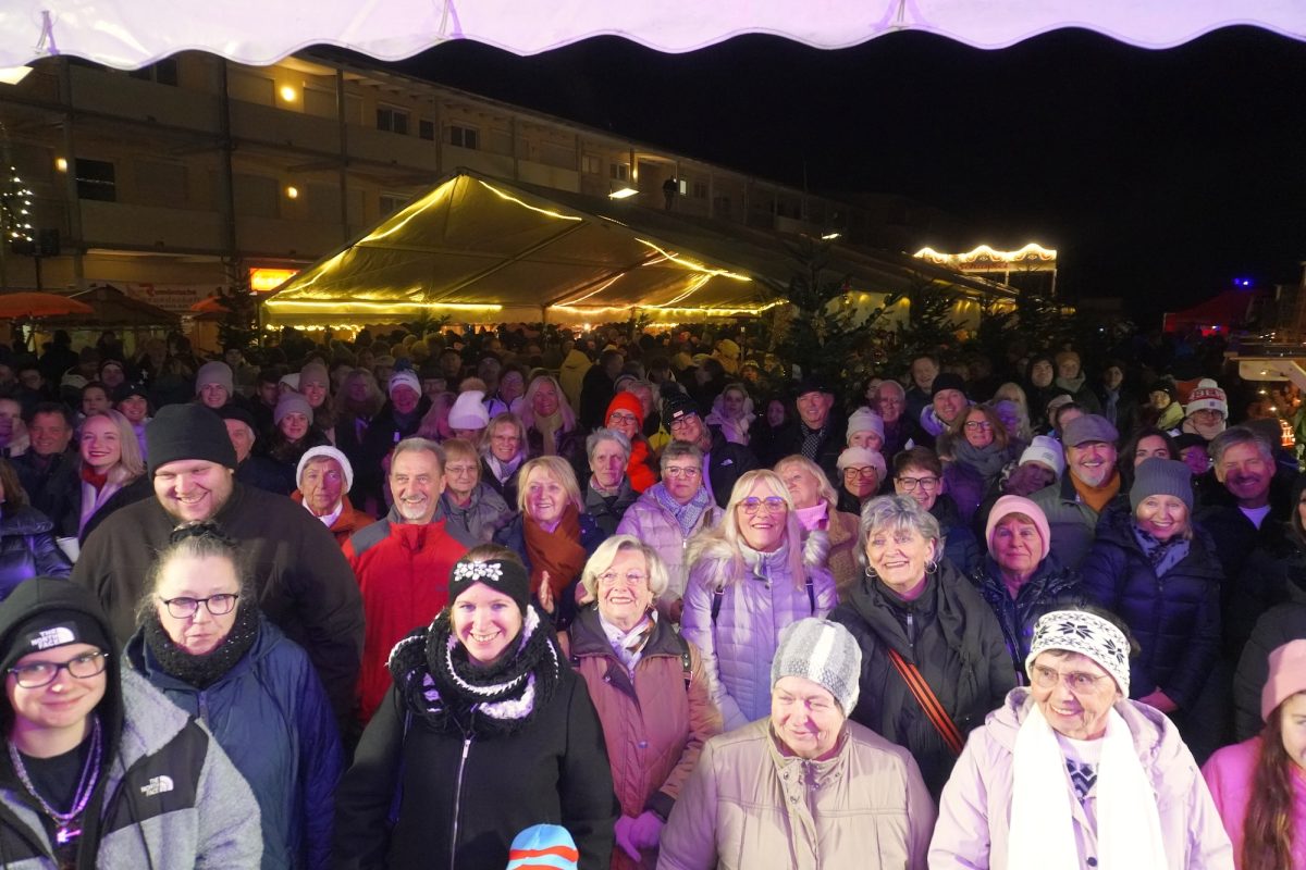 Are you still mine?“ Die Frage „ob sie noch ihm gehören“ muss Oliver Schott auf dem Hallbergmooser Christkindlmarkt garantiert nicht stellen. Wenn der legendäre Stimmungsgarant mit seinem Gospelchor den 60 Jahre alten Musikklassiker „Unchained Melody“ von „The Righteous Brothers“ anstimmt, blinkt auf der Romantikskala von 1 bis 10 eine klare 12. Verliebte schauen sich noch ein wenig verliebter tief in die Augen und jene, die gerade keines Gegenübers habhaft sind, wiegen sich allein mit leicht sehnsuchtsvollem Blick zu den sanften Klängen. „Träumen wird ja wohl erlaubt sein“, meint eine Zuhörerin lachend, nippt an einem „Seelentröster“ und schmettert auch ein paar Songs später entzückt das „Glory, glory Halleluja“ mit. Wie seit 25 Jahren hat Oliver Schott den Hallbergmooser Stand-up Chor 2025 von der ersten bis zur letzten Note fest im Griff.