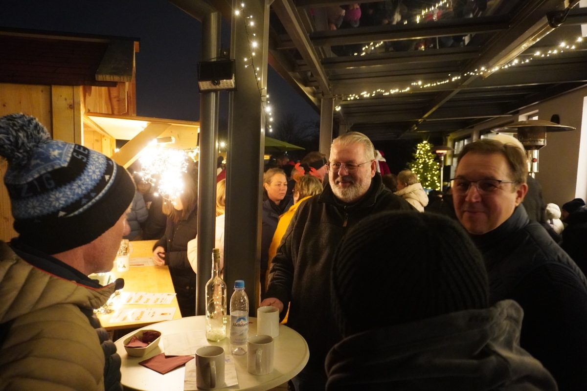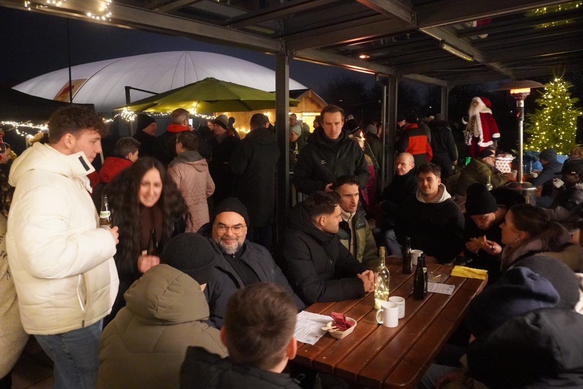 „Was wir in der Pandemie begonnen haben, hat sich irgendwie fortgesetzt“, meint Michaela Reitmeyer: „Wir feiern unsere Weihnachtsfeier seither draußen. Nach den Festen in und vor der Stockschützenhalle, haben wir dieses Mal das Lager auf dem Tennisgelände aufgeschlagen, weil wir möglichst viele Abteilungen involvieren wollen.“ Die Location entpuppt sich als Renner, wie aufgeregt herumflitzende Kinder, entspannte Eltern und bewegungsbegeisterte Mitglieder belegen. Und weil im Sport nicht nur Körper, Kopf und Kalkül zählen, sondern auch Glück und vor allem ein wenig Wagemut zum Sieg führen, verzichtet der Verein im Vorfeld mutig auf einen Plan B im Falle sehr schlechten Wetters: „Den hatten wir tatsächlich nicht, weil wir keine Indoor-Lokalität haben, jedenfalls so spontan nicht, auf die wir mal eben ausweichen können. Nicht für die Menge Leute“, meint Reitmeyer lachend über das letzte Fest des Vereins im Jahr 2025 und resümiert: „Es war ein Ausnahmejahr, wegen der 75 Jahre seit der Vereinsgründung. Wir hatten einige Feiern zum Jubiläum. Aber die Weihnachtsfeier bleibt auf jeden Fall auch ein Highlight und setzt so gesehen das glanzvolle Schlusslicht.“