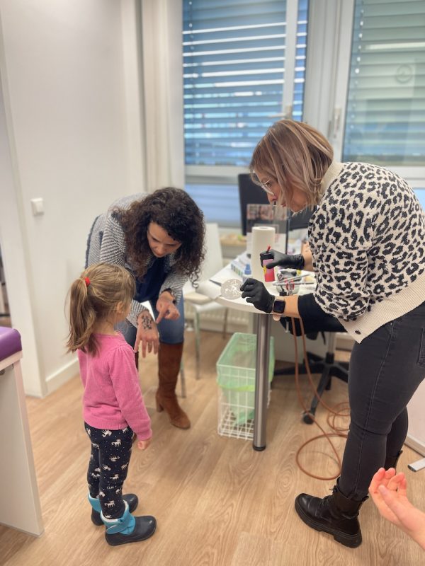 Die komplett renovierte Praxis erstreckt sich über 240 Quadratmeter und präsentiert sich hell, modern und konsequent kinderfreundlich gestaltet. Nummerierte Behandlungszimmer, kleine Wandmalereien, Kuscheltiere, Schieberätsel und Spielelemente ziehen sich durch die Räumlichkeiten. Auch für wartende Patienten gibt es mehrere Rückzugsorte: einen Warteraum mit Spielfläche sowie einen separaten Raum mit Rutsche, Tisch und Büchern, welcher auch bei dieser Feier zu einem beliebten Ort für die Jüngsten wurde. Für zusätzliche Unterhaltung sorgte eine kleine Schnitzeljagd, welche für die jungen Gäste vorbereitet wurde: Am Empfang erhielten sie ihren persönlichen Laufzettel, mit dem sie von Frage zu Frage durch die Praxis gehen konnten. Ergänzt wurde das Programm durch Kinderschminken sowie Glitzer- und Airbrush- Tattoos, welche von Color Rush by Kahrin Teich angeboten wurden.