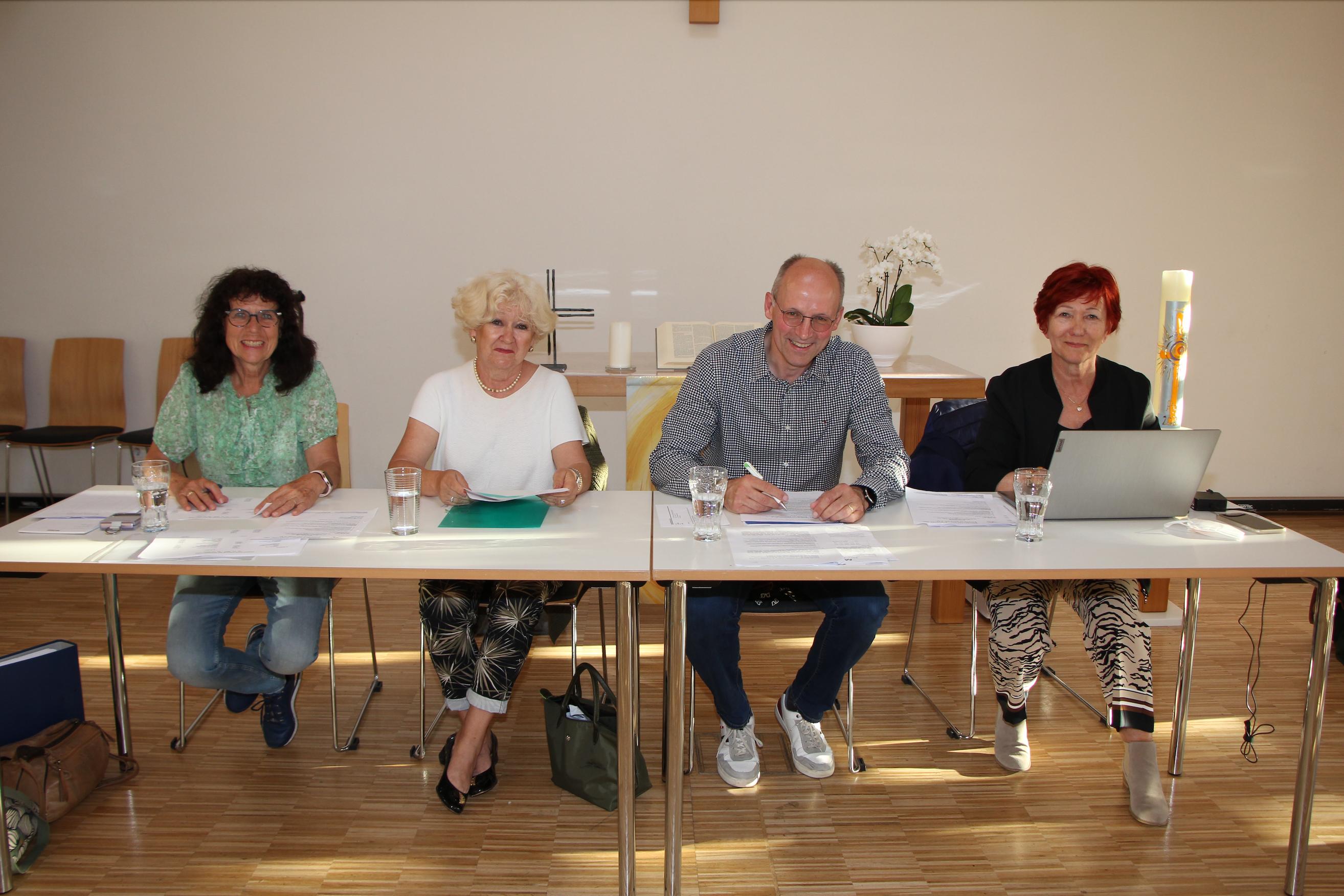 Der Vorstand des Fördervereins – Freunde der Emmaus-Kirche e.V.: (v.li) Helga Meindl (Schatzmeisterin), Karin Eigeldinger (Beisitzerin), Uwe Rüddenklau (1. Vorsitzender) und Beate Bodenschatz (2. Vorsitzende)