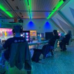 Mit einem fliegenden Wechsel übernahmen ab 18 Uhr die Erwachsenen den Saal. Viele brachten beeindruckende Geräte mit: große, bunt beleuchtete oder transparente PCs mit wuchtigen Monitoren neben kleineren, mobilen Setups. Die Atmosphäre veränderte sich sofort. Wo zuvor stille Konzentration herrschte, füllten nun Lachen, Ausrufe und lebhafte Reaktionen den Raum. In Gruppen wurde gemeinsam oder gegeneinander gespielt, und als gegen 21 Uhr die bestellte Pizza eintraf, erreichte der Abend seinen gemütlichen Höhepunkt. Das offene Ende erlaubte es den Teilnehmenden, so lange zu bleiben, wie die Lust am Spielen anhielt.