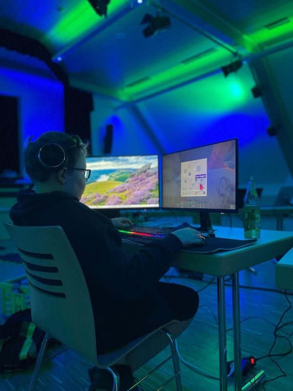 Zwischen blinkenden Bildschirmen, surrenden Lüftern und verstreuten Kabeln verwandelte sich der Gemeindesaal Hallbergmoos am 21. November 2025 in eine atmosphärische „Zocker-Höhle“. Blaue und grüne Lichtakzente tauchten den Raum in einen futuristischen Schimmer, während sich das Summen der Technik mit gedämpften Gesprächen und raschelnden Taschen zu einem lebendigen Klangteppich verband. Die LAN-Party des „Arbeitskreises Digital“ zog an diesem Tag Kinder, Jugendliche und Erwachsene gleichermaßen an – jeder von ihnen bereit, die digitale Welt nicht allein, sondern gemeinsam zu erleben. Schon am frühen Vormittag bereitete das Organisationsteam den Saal vor. Während Michael Fischer Netzwerk und WLAN einrichtete, kümmerte sich Thomas Mach um die Planung, die Homepage und die Verpflegung. Matthias Hartel prüfte Computer und Stromversorgung, und Norbert Pitters bereitete die Geräte und technische Ausstattung vor. Unterstützt wurde das Team von Stefanie Schütze und Rita Guske, die die Abläufe im Blick behielten. Für das leibliche Wohl standen Wienersemmeln – auch in veganer Variante – sowie Wasser, Spezi, Apfelschorle und Zitronenlimonade zu kleinen Preisen bereit. Der Nachmittag gehörte den Kindern und Jugendlichen zwischen 12 und 17 Jahren. Von kurz nach 13 Uhr strömten die ersten Kinder mit ihren mitgebrachten Geräten in den Saal, wo diese zunächst geprüft, mit einem Siegel versehen und an den vorbereiteten Plätzen eingerichtet wurden. Die jungen Spielerinnen und Spieler konnten selbst entscheiden, welche Spiele sie nutzen wollten, wobei die Altersfreigaben selbstverständlich berücksichtigt wurden. Über Zugangsdaten, die gut sichtbar auf einer Leinwand angezeigt wurden, entstand bald ein reges Miteinander, und kleine technische Herausforderungen lösten die Kinder meist im Team. Titel wie Fortnite, Minecraft, Trackmania, Brawl Stars und Brawl Hall, prägten den Nachmittag und erfüllten den Raum mit einer konzentrierten, ruhigen Spannung, in der jedes leise Klicken und jede kurze Rückfrage Teil des gemeinsamen Erlebens wurde.