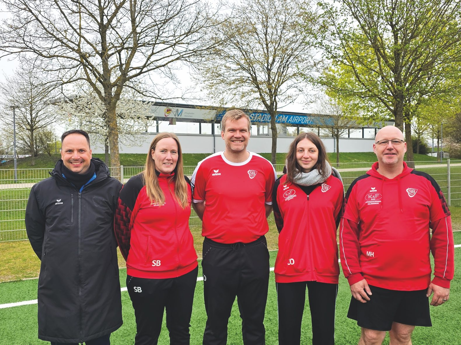 Für den Aufschwung im Mädchenfußball sorgen (v.l.n.r.): Chris Bauer, Steffi Bauer, Christoph Oberschätzl, Pola Kus, Marcel Harnisch (Foto: VfB)