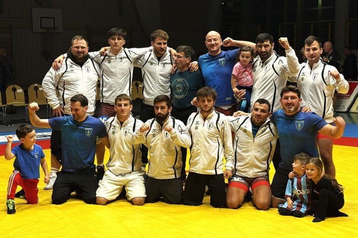 Das Trio „BayernExtrem“ mit den Musikern Uwe Rückert, Martin Fischer und Benno Köstler (v.li.) mit Sabina Brosch, 1. Vorstand, und Max Kreilinger, 2. Vorstand, des Kulturvereins Cultiamo (zweite Reihe stehend)