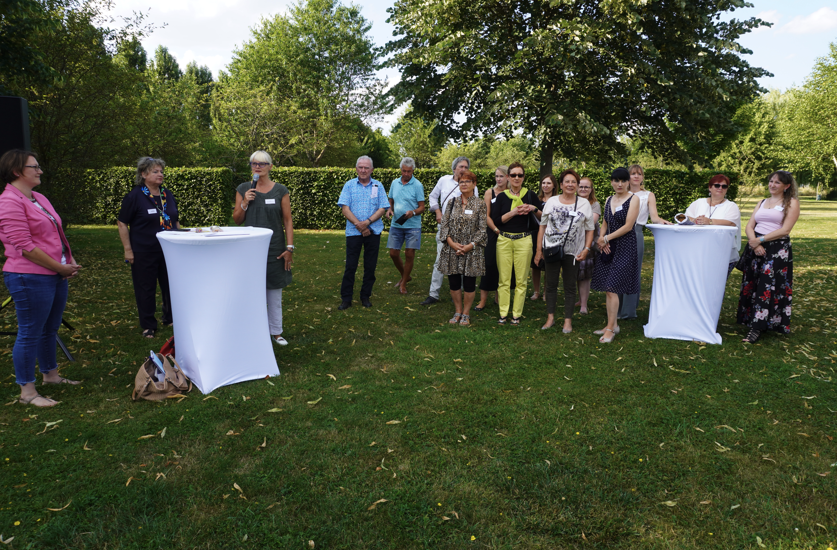 Die Wanderausstellung ist bis zum sechsten August im Sport- und Freizeitgelände zu sehen, danach bis sechsten September im Goldachpark und bis etwa achten Oktober auf der Wiese am Rathausplatz. Nach dem Abschluss sollen die “Kunstbanner” ein „Upcycling“ erhalten: „Eventuell entstehen daraus Taschen, die dann vielleicht auf dem Weihnachtsmarkt zum Verkauf anbieten“, offenbart Inez Eckenbach-Henning die Überlegungen des AK Kunst.