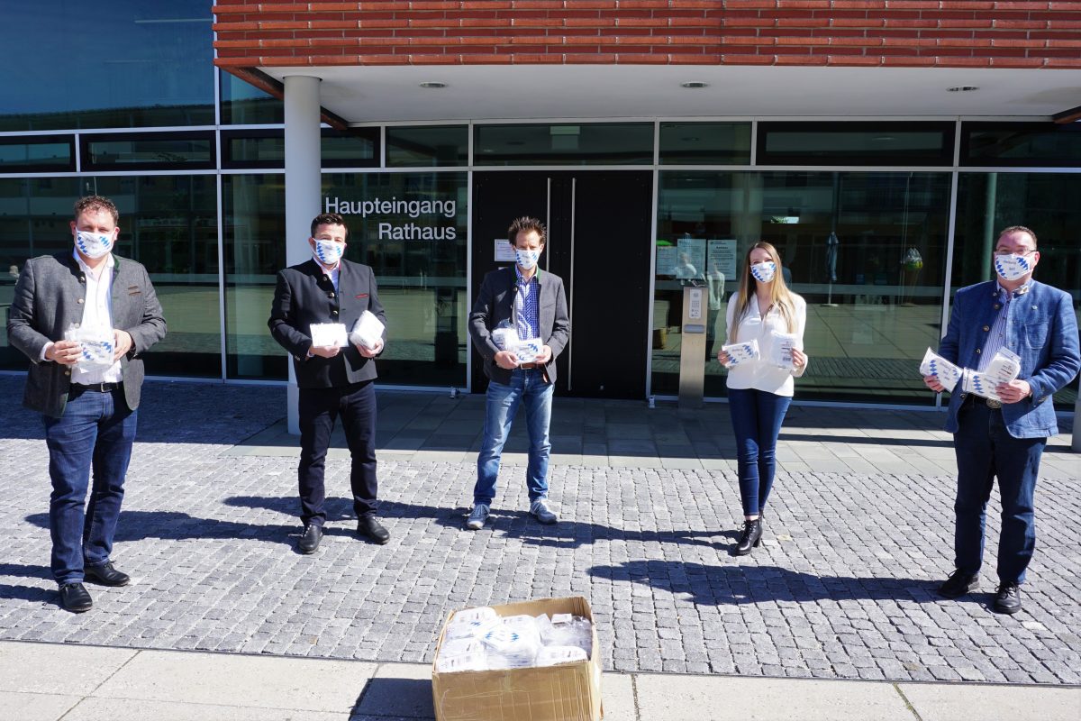 Es ist eine der ersten von 5.000, die Wolfgang Eberhart (Imvest), Alexander Waldhier (Fliesen Waldhier), Christian Schirsch (Non-Food-Vertrieb Schirsch) den Hallbergmoosern spenden: „Wir wollten einfach etwas für unsere Gemeinde machen“, erklärt Christian Schirsch. In ihrer WhatsApp-Gruppe „Mich dürstet“ haben sie die zündende Idee, sich als Neu-Designer zu versuchen: „Ich habe ja sowieso damit zu tun“, sagt Schirsch lachend, „da haben wir beschlossen, welche zu bestellen und uns einen Spruch dazu einfallen lassen.“ Als waschechter Hallbergmooser ist er erleichtert, nach einer langen Wartezeit die ersten 800 Stück verteilen zu können: „Momentan wird ja alles eingeflogen. Wenn Firmen etwas benötigen, weil sie ihre Fließbänder wieder anschmeißen und ihnen eine Schraube fehlt, kommt die per Flugzeug. Es dauert viel zu lange mit dem Schiff und alles hängt dann noch im Zoll fest.“ So muss er sich tatsächlich noch weitere Tage gedulden, bis er die übrigen 4.200 Community-Masken abholen kann.