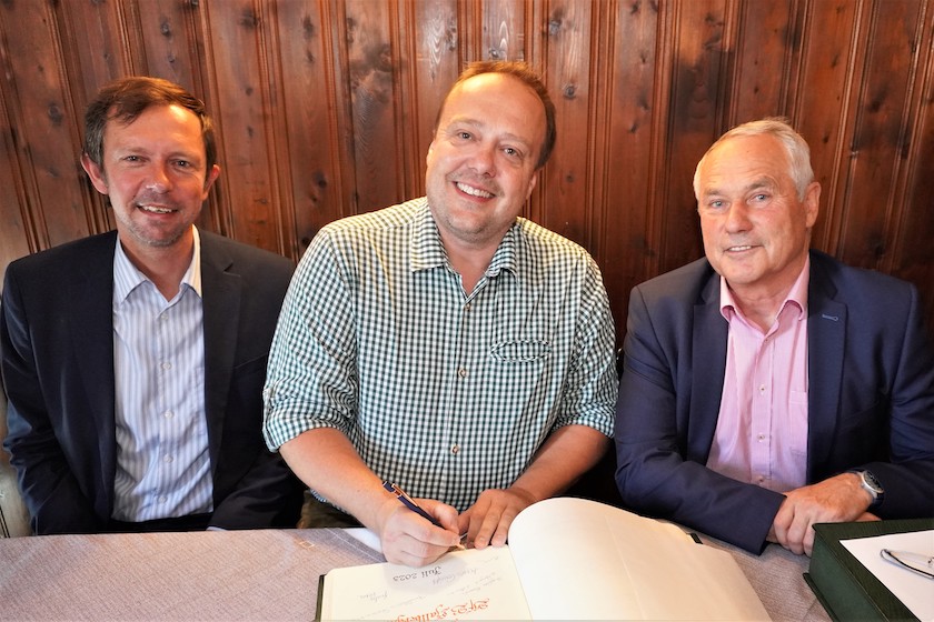 Schwungvoller Eintrag ins Goldene Buch