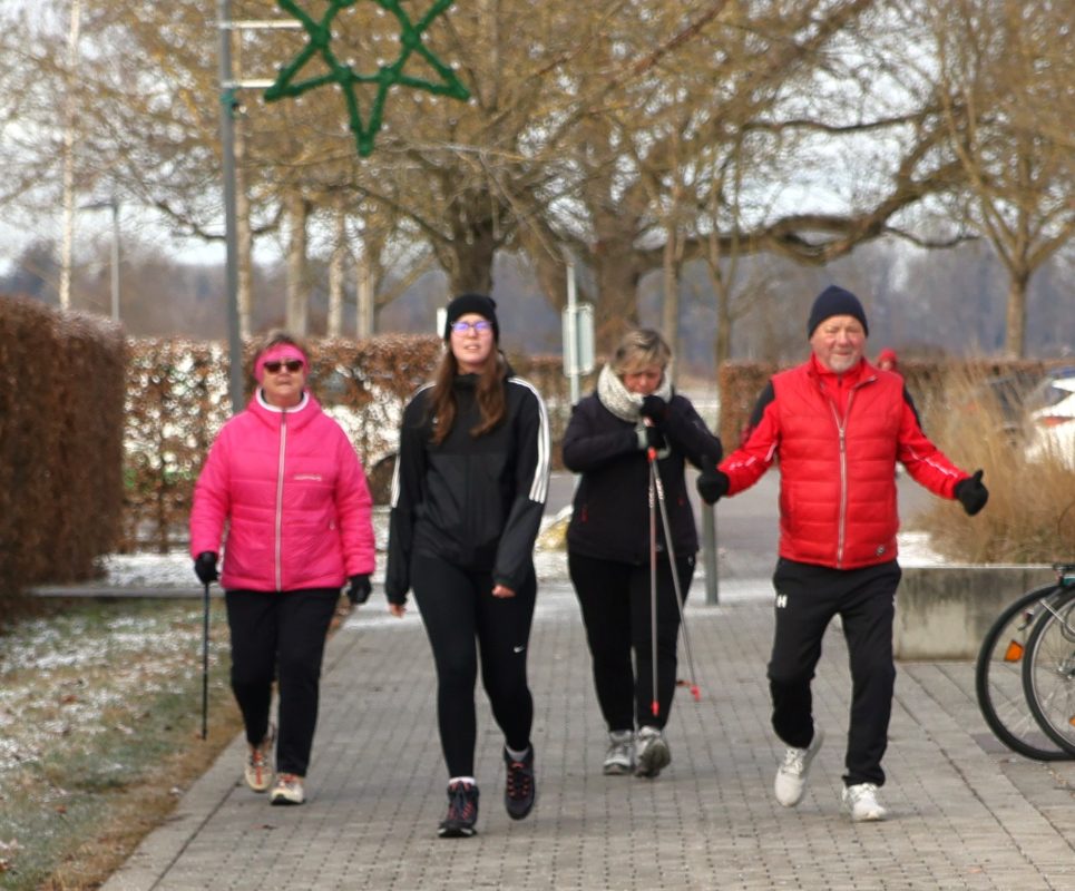 Hans Hartshauser, Initiator und Gesicht des Silvesterlaufs, begrüßte die Anwesenden und stimmte ein Geburtstagsständchen für den ehemaligen Bürgermeister Sepp Niedermeier an. Zum Aufwärmen sorgte ein „Gute- Laune-Lied“ dafür, dass die Muskeln in Schwung kamen. Kurz nach 10 Uhr fiel der Startschuss. Da beim Hallbergmooser Silvesterlauf keine festen Strecken vorgegeben sind, verteilten sich die Teilnehmenden über das großzügige Freizeit- und Sportparkgelände der Gemeinde. In unterschiedlichen Tempos liefen und gingen sie, einzeln oder in Gruppen, stets mit sichtbar viel Freude an der Bewegung. Zu sehen waren unter anderem Väter mit besetzten Sport-Kinderwägen, rüstige Seniorinnen und Senioren mit und ohne Stöcke oder Rollatoren sowie Teilnehmende mit angeleinten Hunden. Mit dem Zieleinlauf nach einer Stunde war die Veranstaltung jedoch noch lange nicht beendet. Die Organisatoren legen großen Wert auf die gemeinsame Geselligkeit im Anschluss. Der VfB spendierte warme und kalte Getränke sowie Knabbereien, sodass noch lange zusammengesessen, geredet und gelacht wurde, bevor sich die Teilnehmenden schließlich auf den Heimweg machten, um sich auf den Jahreswechsel vorzubereiten.