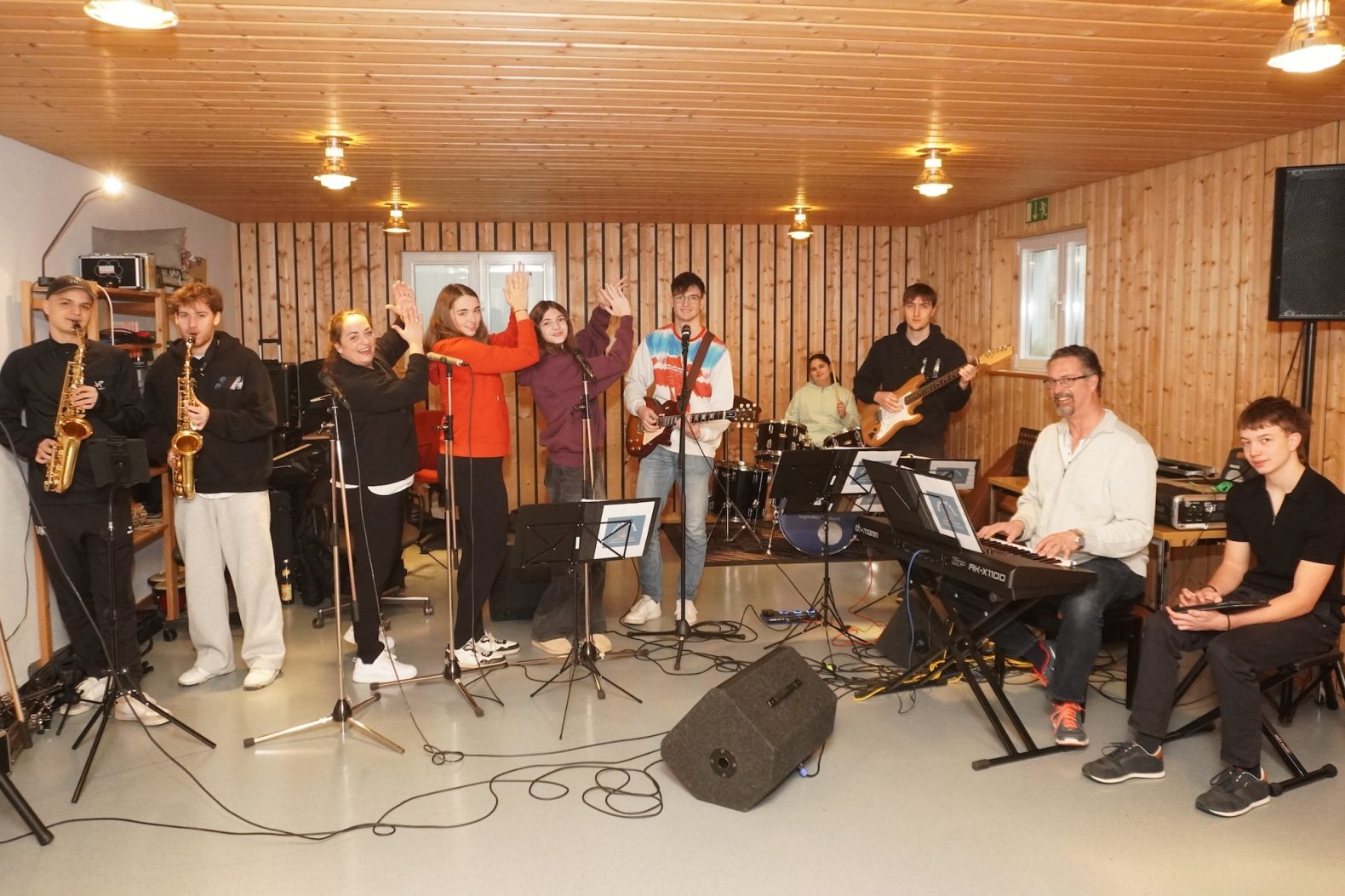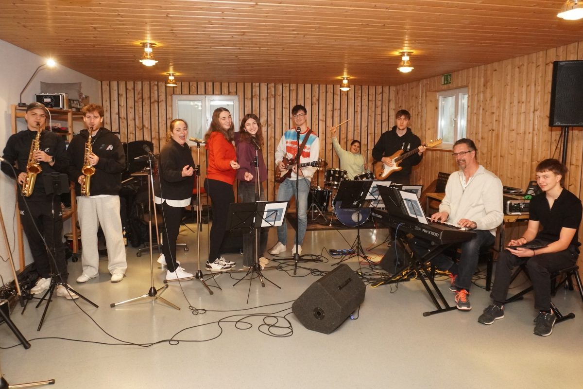So verstärken Linda (17) und Laura (15) die Band mit viel Stimme und kleiner, lebhafter und mitreißender Choreografie am Mikrofon. „Ich bin erst seit vier Monaten mit dabei. Unsere Band hat eine tolle Gemeinschaft und wir wollen einfach zusammen gute Musk machen“, bestätigt Laura den allgemeinen Anspruch. Student Thomas (20) stimmt sichtlich tiefenentspannt zu, während die Mädels kichern. „Die Sache mit der Pubertät ist nicht ganz einfach, aber unsere älteren Jungs sind wirklich gechillt und bringen viel Geduld auf“, lobt Nicole die Musiker. Auch die Suche nach dem guten Klang geschieht offensichtlich ohne größere Dissonanzen. Vor allem sei das Musikgenre zweitrangig: „Eigentlich geht alles gerne von Rock bis Musical, außer Schlager. Das geht nur privat bei einer Party“, klärt Linda (17) auf, Jonas (20) bekräftigt. „Ich höre bevorzugt Rap und Hip-Hop oder die 70er und 80er. Generell bin ich offen für viele Musikgenres.“ Was später die Bühne rocken soll, entscheidet das im Team gemeinsam. „Wenn Vorschläge nicht passen, dann machen wir es nicht“, stellt Nicole fest. Das breitgefächertes Repartoires im Bereich kirchliche, aber auch weltliche Lieder, biete eine nahezu unbegrenzte Auswahl: „Da geht von Gospel bis Rock einiges. Vieles kommt von den Mitgliedern.“