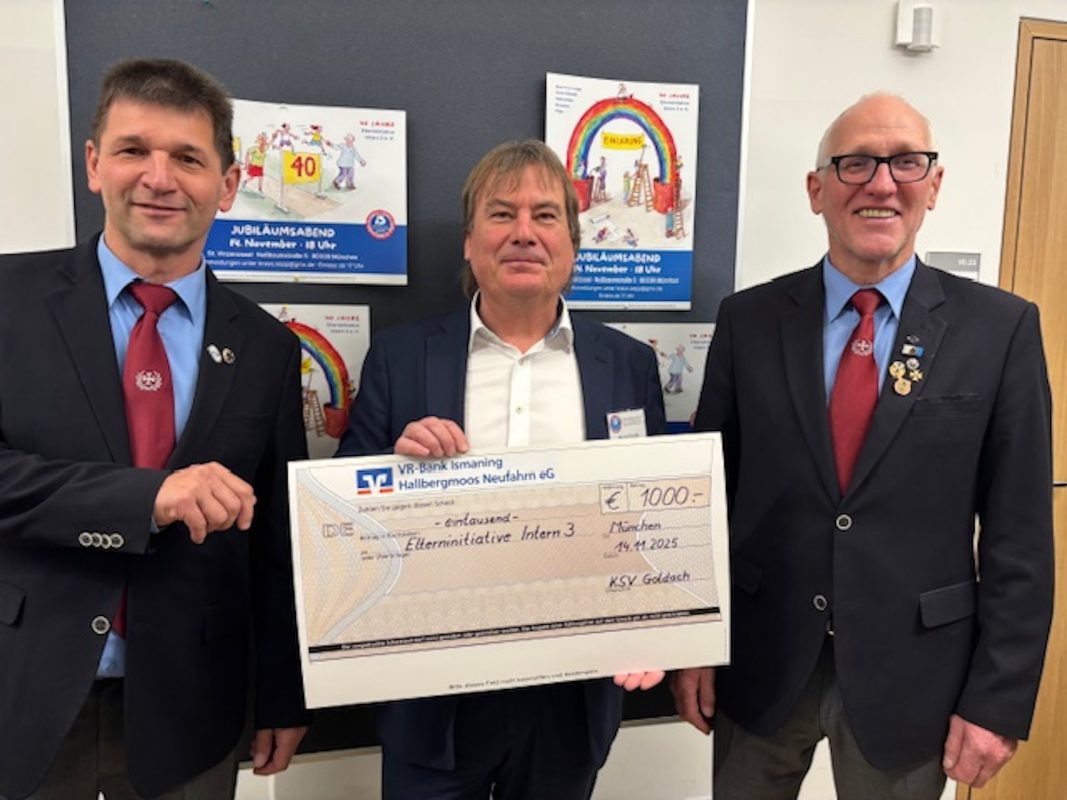 Am Freitag, den 14. November waren die beiden Vorsitzenden Rudi Lamprecht und Herbert Hetzl zur provisorischen Spendenübergabe bei der Elterninitiative Intern 3 e.V. im Dr. von Haunerschen Kinderspital München im Rahmen der Feier zum 40-jährigen Jubiläum. Das Ziel des 1985 gegründeten Vereins ist es, der Krankheit Krebs bei Kindern mehr Leben abzuringen. Er versteht sich als Interessenvertretung und Fürsprecher der Kinder und deren Familien. Er hilft mit, die Lebenssituation krebskranker Kinder zu verbessern, die Familien in ihrer Extrembelastung zu unterstützen und Perspektiven aufzuzeigen, während der Behandlung und auch danach. Nach den Festreden von Alois Fruth, 1. Vorsitzender und Prof. Dr. Christoph Klein, Direktor der Kinderklinik wurde ein Film gezeigt, der die Entwicklung der Einrichtungen in der Klinik zeigte. Danach spielte ein Orchester und eine weitere Festrede mit Informationen zum Werdegang der Initiative folgte. In der Pause konnte dann der symbolische Scheck über 1000.– € übergeben werden. Der Betrag wurde bereits 2024 überwiesen. Die Feier endete nach weiterer Musik mit einem Buffet, Getränken und Gedankenaustausch der weit über hundert Gäste.