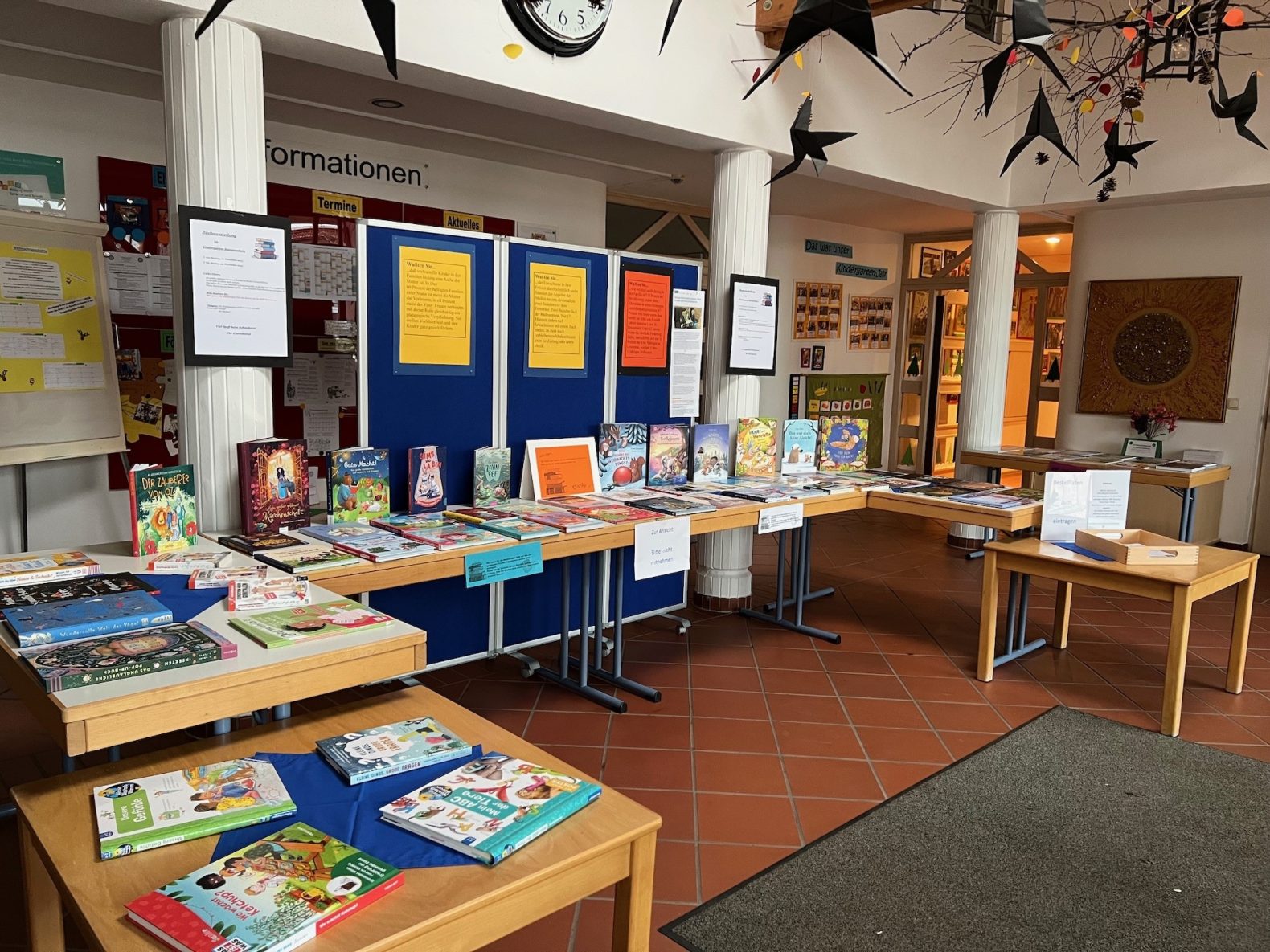 Ebenso verwandelt sich eine Woche lang die Eingangshalle in eine beeindruckende Buchausstellung, die nicht nur die kleinen Besucher, sondern auch ihre Eltern und Großeltern fasziniert.
