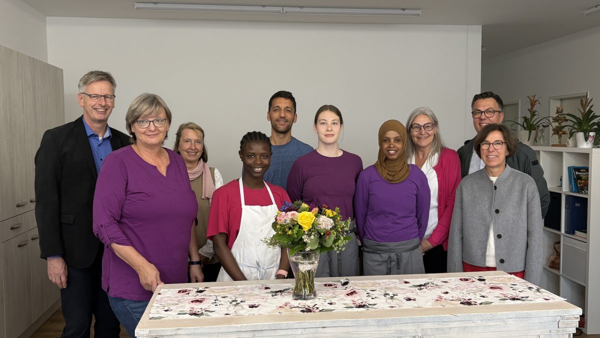 Von links: Joachim Nunner (Geschäftsführer), Dinah Ertl (Hauswirtschaftsmeisterin), Tatjana Gosau (Finanzleitung), Aminata Khadijatu (Praktikantin), Anneser Tobias (Landratsamt Freising), Annika Eizenberger (Azubi Hauswirtschaft, 3. Lehrjahr), Fatha Abdirahman Jamac (Azubi Hauswirtschaft, 1. Lehrjahr), Sabine Bueno-Gil (Verwaltungsleitung), Stefan Rentz (Firma Rentz), Marion Lamina (Firma Rentz)