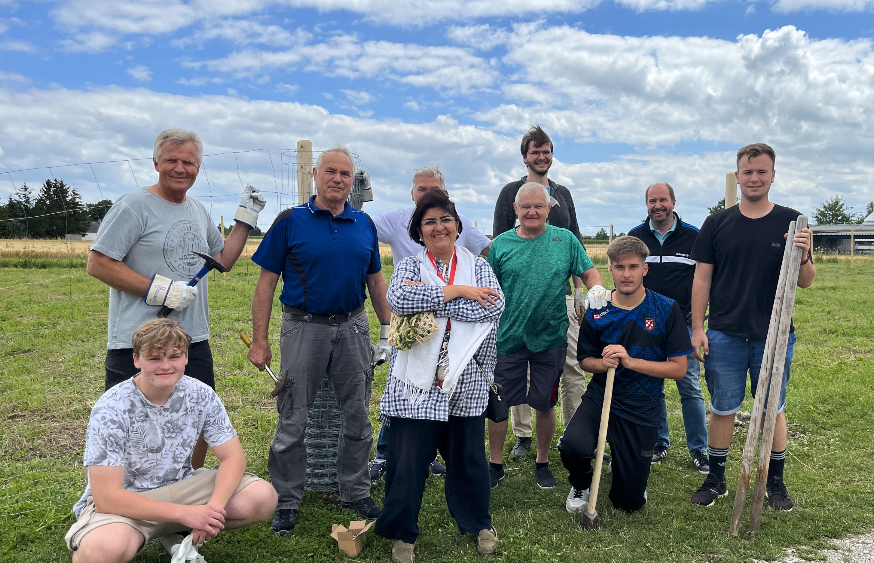 Viele fleißige Hände halfen Anfang Juli mit, um für die Tiere ein passendes Gehege bauen: Schülerinnen und Schüler, Rektor Rudi Weichs, Bürgermeister Josef Niedermair und Sepp Fritsch