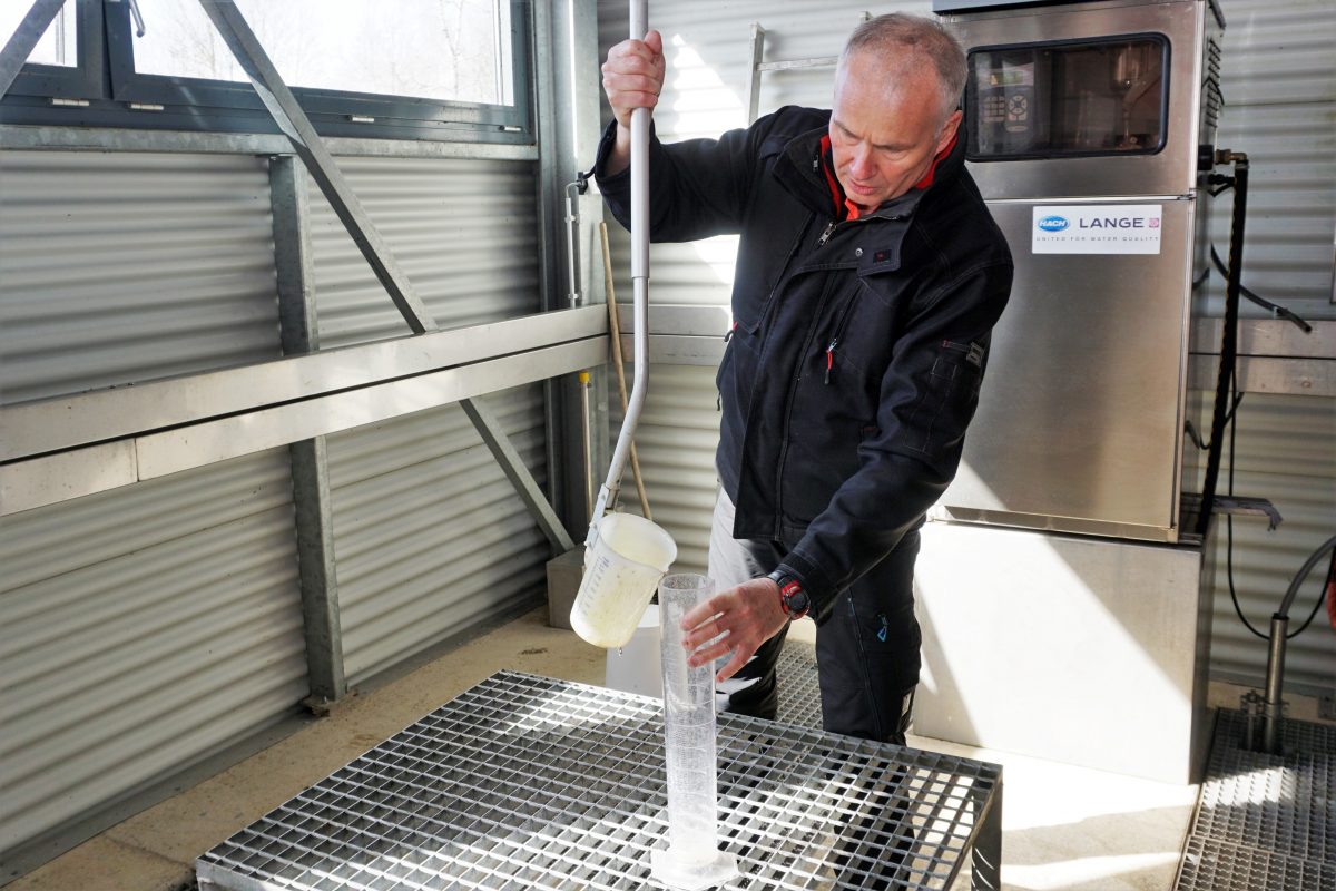 Vorher durchläuft das Abwasser zunächst bei einer Hebeanlage die mechanische Reinigung, von dort geht es in den Sandfang, da sich durch die Bautätigkeiten in Hallbergmoos viel Sand im Kanal sammelt. „Anschließend kommt es in die Biologie, davor ist die biologische Phosphatelimination geschaltet, dann geht es in die Nachklärung, dort setzt sich Schlamm ab auf dem Mikroorganismen sitzen“, erklärt Mittermeier das Vorgehen. „Es entstehen Flocken, die wir im Nachklärbecken absetzen können. Die Flocken mit den Bakterien werden zurückbefördert und beginnen mit dem neuen Abwasser zu arbeiten, es handelt sich also um eine Art Kreislaufbetrieb.“