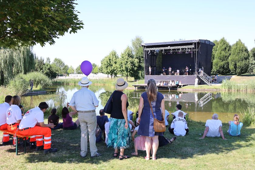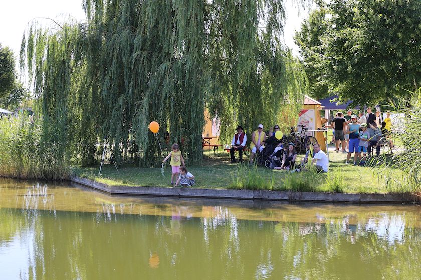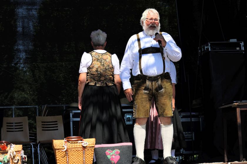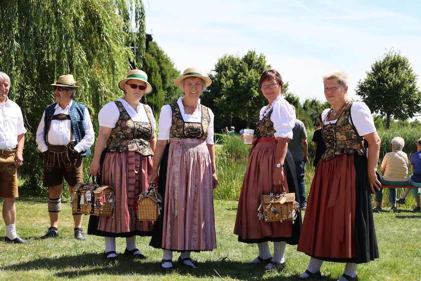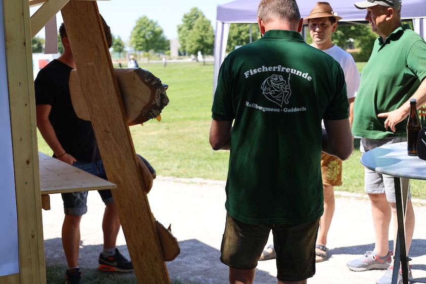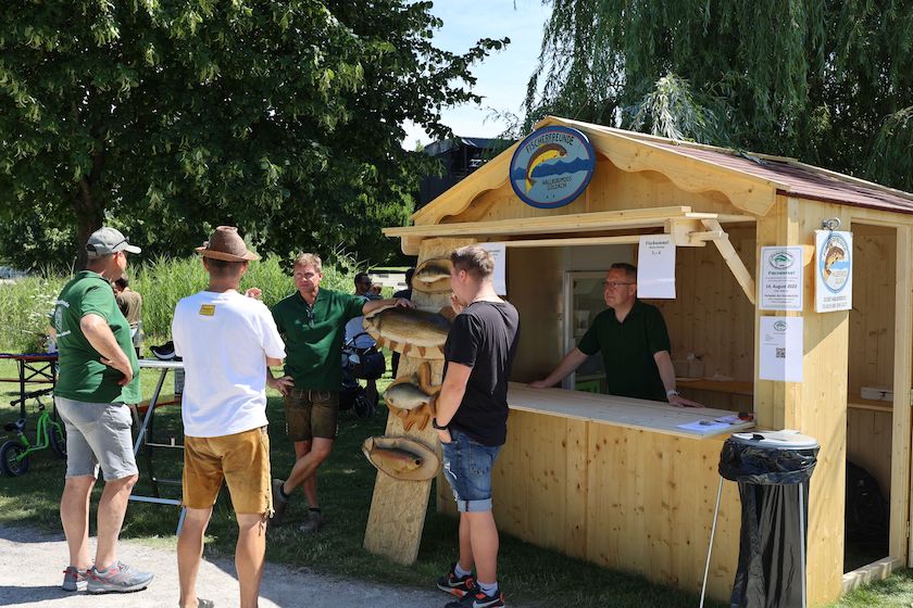 Auf der Seebühne fand den ganzen Tag über ein abwechslungsreiches Programm statt und daneben am Weiher hatten die Fischerfreunde ein Zielwerfen mit originalen Angelruten im Sortiment.
