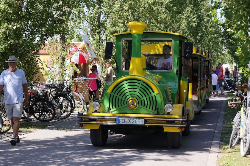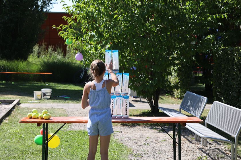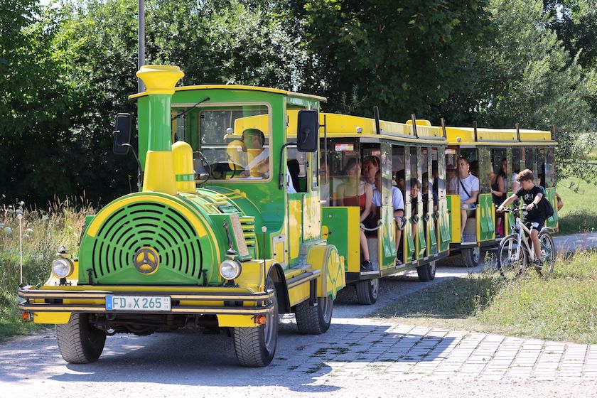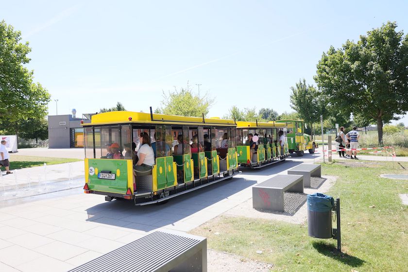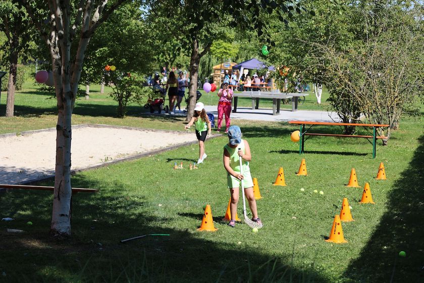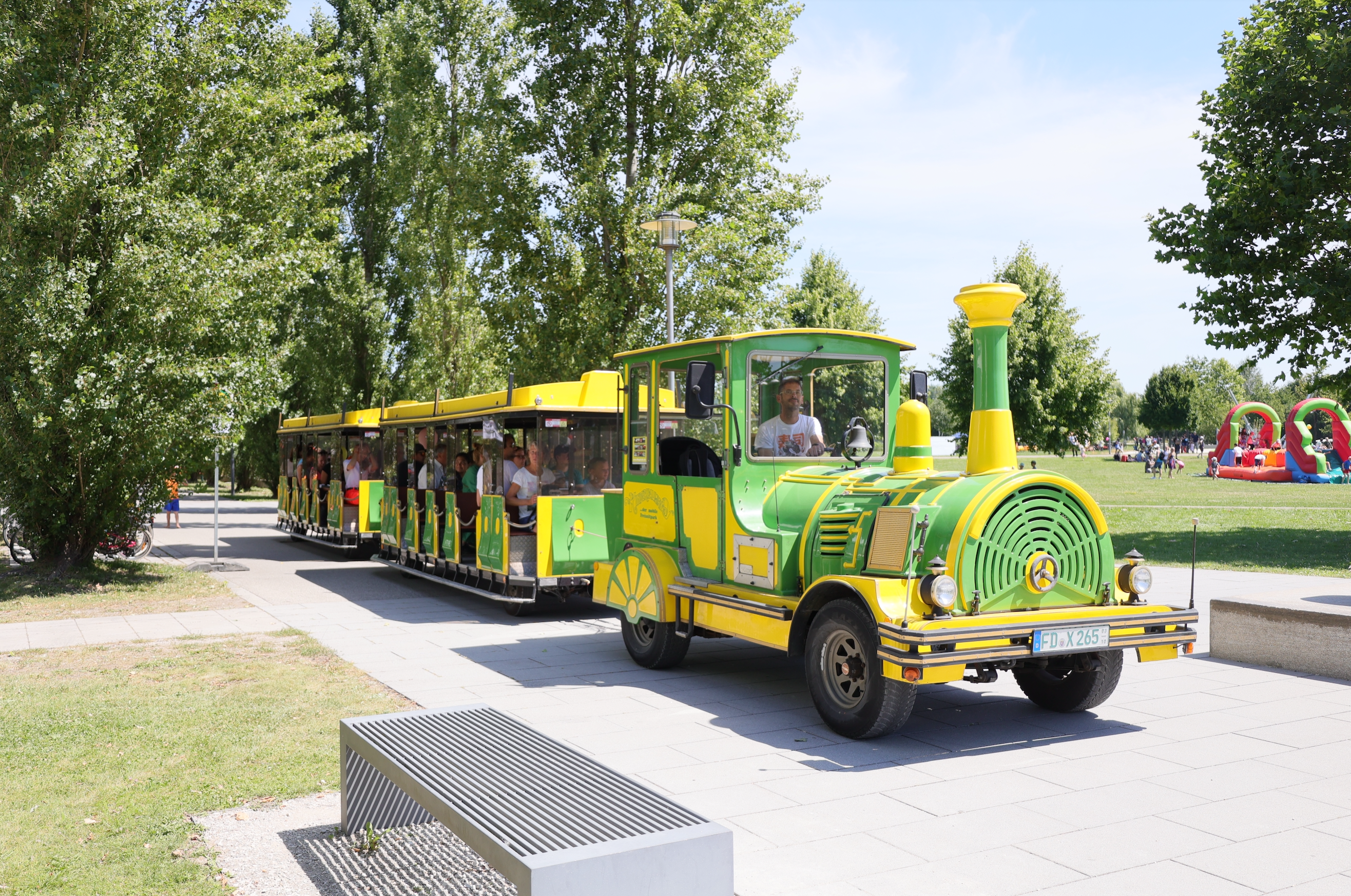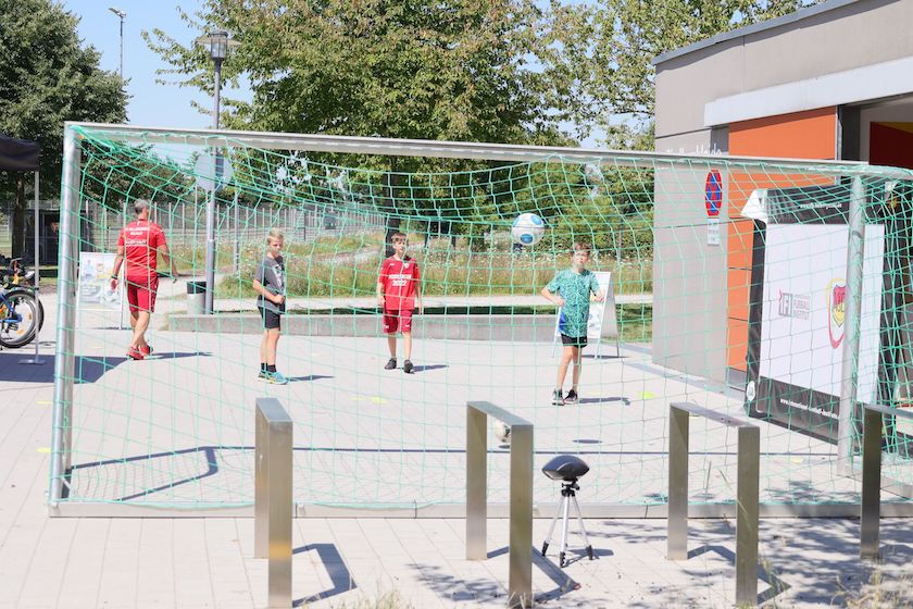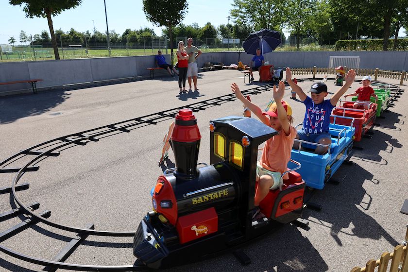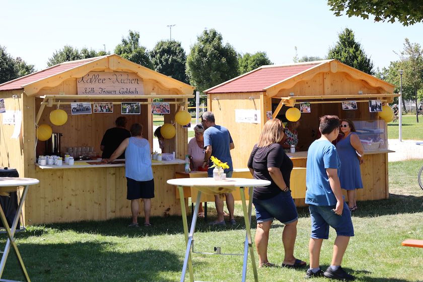 Eine Bimmelbahn brachte die Besucher auf dem weitläufigen Gelände zu den einzelnen Stationen. Nicht nur Vereine die im herkömmlichen Sinne Sport betreiben stellten sich vor, sondern auch die Musikschule, die Frauen von St. Theresa, die Katholischen Frauen Goldach, der Volkstanzkreis sowie der Heimat- und Traditionsverein. Besonders für Kinder gab es eine große Auswahl von Aktionsständen. Hüpfburg, Kinder-Eisenbahn, Mal-Aktionen, Bungee-Trampolin, Laser Tag, und noch viele andere Attraktionen. Im Mittelpunkt stand aber der sportliche Aspekt. Es wunderte nicht, dass der VfB, als größter Vereine der Kommune, die meisten Angebote stellte: Fußball, Volleyball, Tennis, Tischtennis, Kegeln oder Stockschützen. Die Schützengesellschaft Edelweiß bot ein Schnupperschießen am Schießstand an.