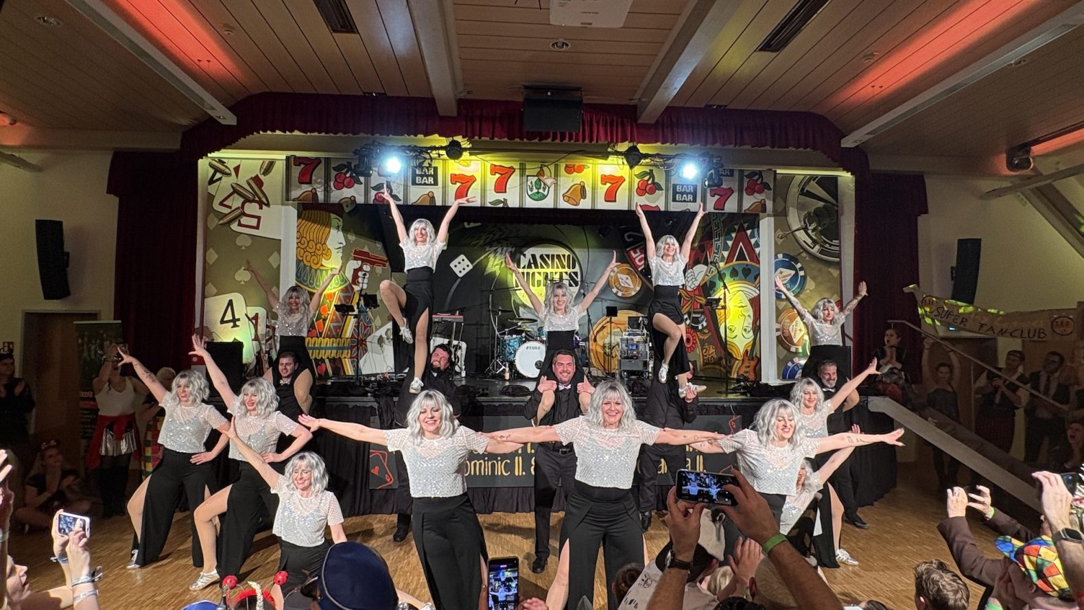 Die entscheidende Frage kam schnell: Wenn wir schon trainieren wie früher – wann stellen wir uns wieder auf die Bühne? Die Antwort lag näher als gedacht. Seit vielen Jahren hatte Hallbergmoos keinen Rosenmontagsball mehr erlebt. Der letzte – damals noch organisiert vom Rauch- und Sparverein – liegt schon lange zurück. Und plötzlich war sie da, die perfekte Idee: Warum nicht genau diese Tradition wieder aufleben lassen? Der Termin war gefunden. Der Gemeindesaal Hallbergmoos wurde zur Bühne für ein Comeback mit Glitzer, Nostalgie und jeder Menge Herzblut. Veranstalter des Abends sind die Dancing Legends gemeinsam mit der FG Narrhalla Hallbergmoos-Goldach. Und es passte einfach perfekt: Die Narrhalla hat am Rosenmontag kein eigenes Pflichtprogramm, sondern schlicht die Möglichkeit, auch einmal zuzuschauen – schließlich steigt am Faschingsdienstag ihr großes Finale am Rathausplatz. Umso schöner war es für die Aktiven, an diesem Abend nicht selbst im Rampenlicht stehen zu müssen, sondern ihre „Legenden“ anfeuern zu dürfen. Bei der Organisation lief alles rund – klar, wenn so viele erfahrene Bühnenprofis zusammenarbeiten, dann flutscht das. Von der Saalgenehmigung, bei der die Narrhalla gerne unterstützte, bis zur Detailplanung lag der Rest in den bewährten Händen der Legends. Und die wissen schließlich, wie man einen Abend zum Strahlen bringt. Der große Abend im Gemeindesaal zeigte eindrucksvoll: Tanzen verlernt man nicht. Und Fasching schon gar nicht. Mit viel Charme, einem Augenzwinkern und jeder Menge Energie brachten die Dancing Legends das Publikum auf eine schwungvolle Reise durch Jahrzehnte Hallbergmooser Faschingsgeschichte. Es wurde gelacht, geklatscht und getanzt bis in die späte Nacht – und spätestens beim gemeinsamen Finale war klar: Diese Legenden haben nichts verlernt. Der Rosenmontag in Hallbergmoos lebt wieder – und wie!