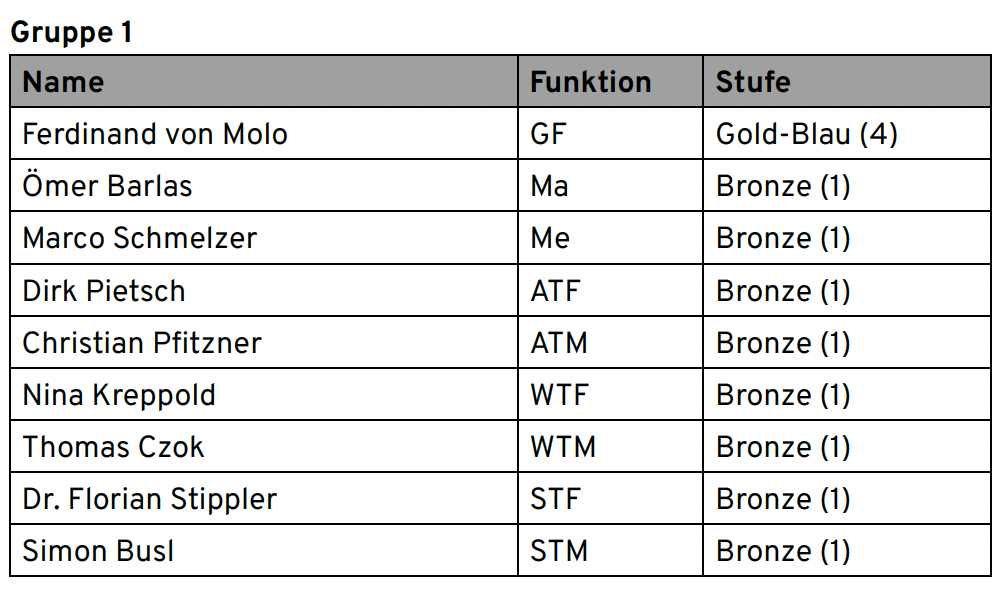 Mittlere Reihe v.l.n.r. : 1.Kdt. Richard Busl, Ferdinand von Molo, Ömer Barlas, Dirk Pietsch, Nina Kreppold, Dr. Florian Stippler, Schiedsrichter Stefan Felsl, Schiedsrichter Florian Bock, Schiedsrichter Florian Ferdinand, KBM Reinhold Jasch, 2.Kdt. Franz Weiß