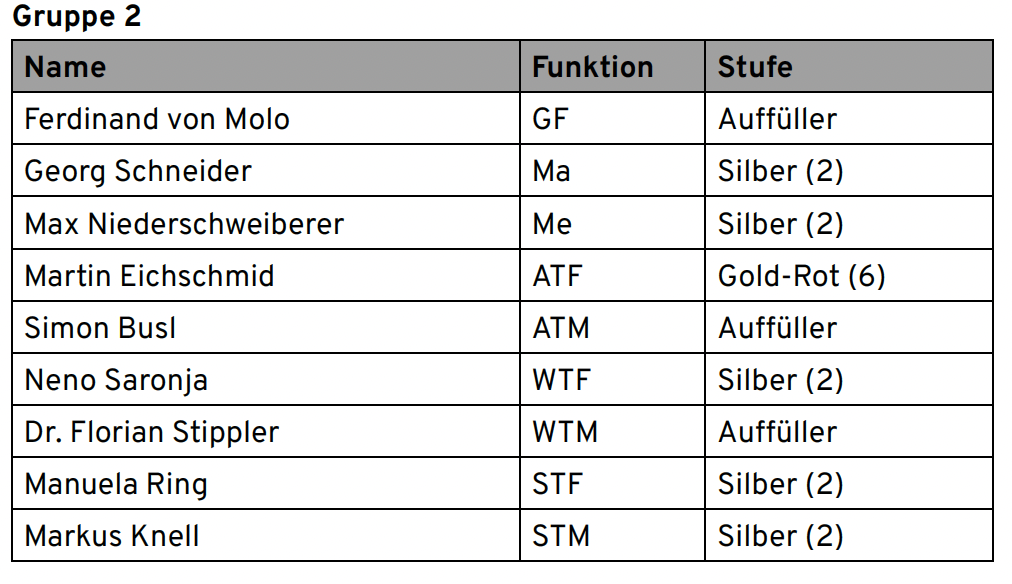 Vordere Reihe v.l.n.r. : Georg Schneider, Martin Eichschmid, Neno Saronja, Manuela Ring