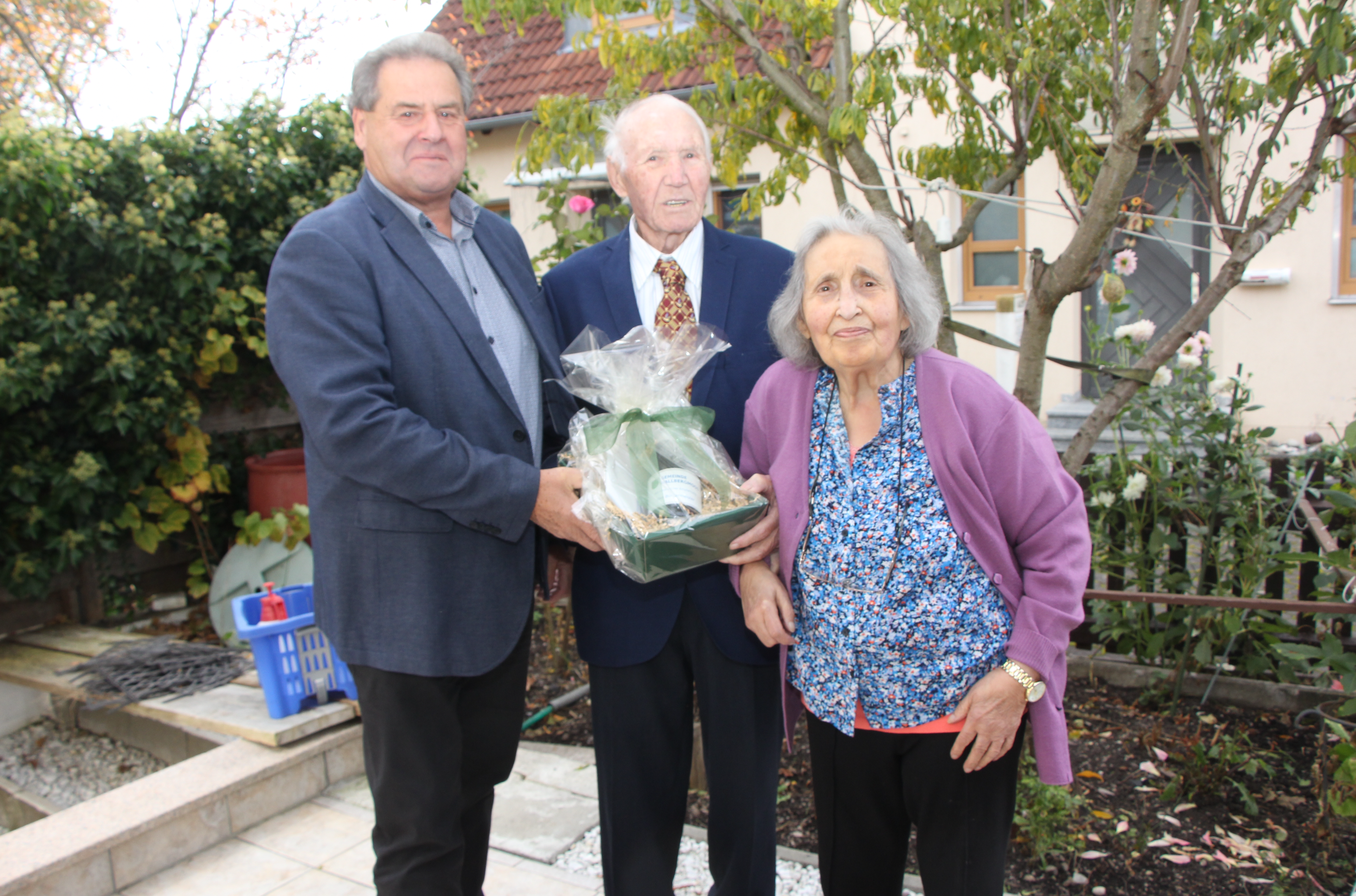 Zur Feier des 65. Hochzeitstages wartete eine festlich gedeckte Kaffeetafel auf die Gäste und Giuseppe hatte sich mit Anzug und Krawatte besonders fein gemacht. Das Ehepaar freute sich sehr, dass der 2. Bürgermeister Helmut Ecker zum Gratulieren kam, der den Ehejubilaren die Glückwünsche und ein Geschenk der Gemeinde überbrachte. Auch der Mooskurier gratuliert herzlich zu diesem seltenen Hochzeitsjubiläum und wünscht dem Ehepaar Di Bella alles Gute.
