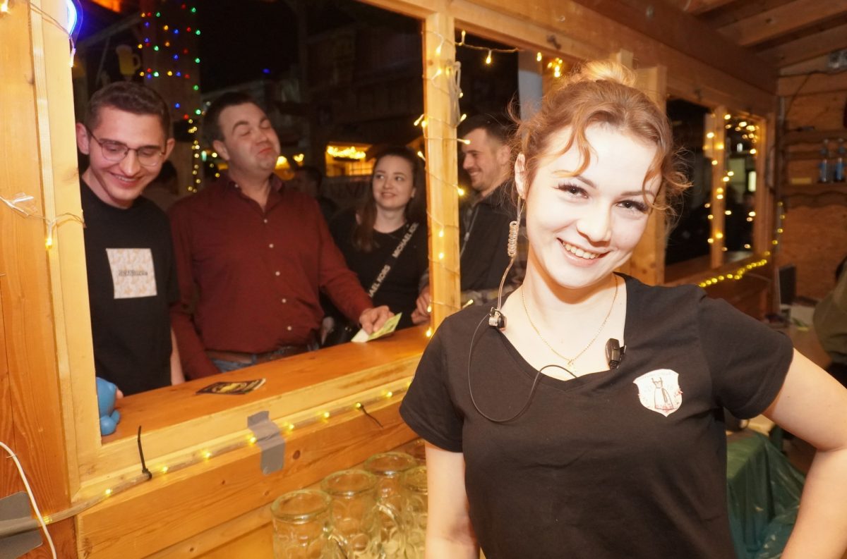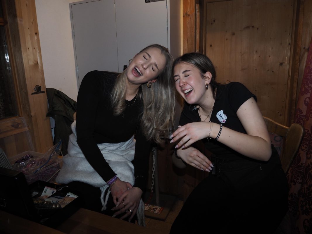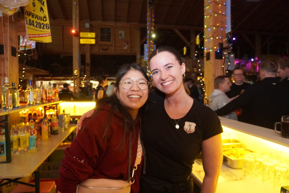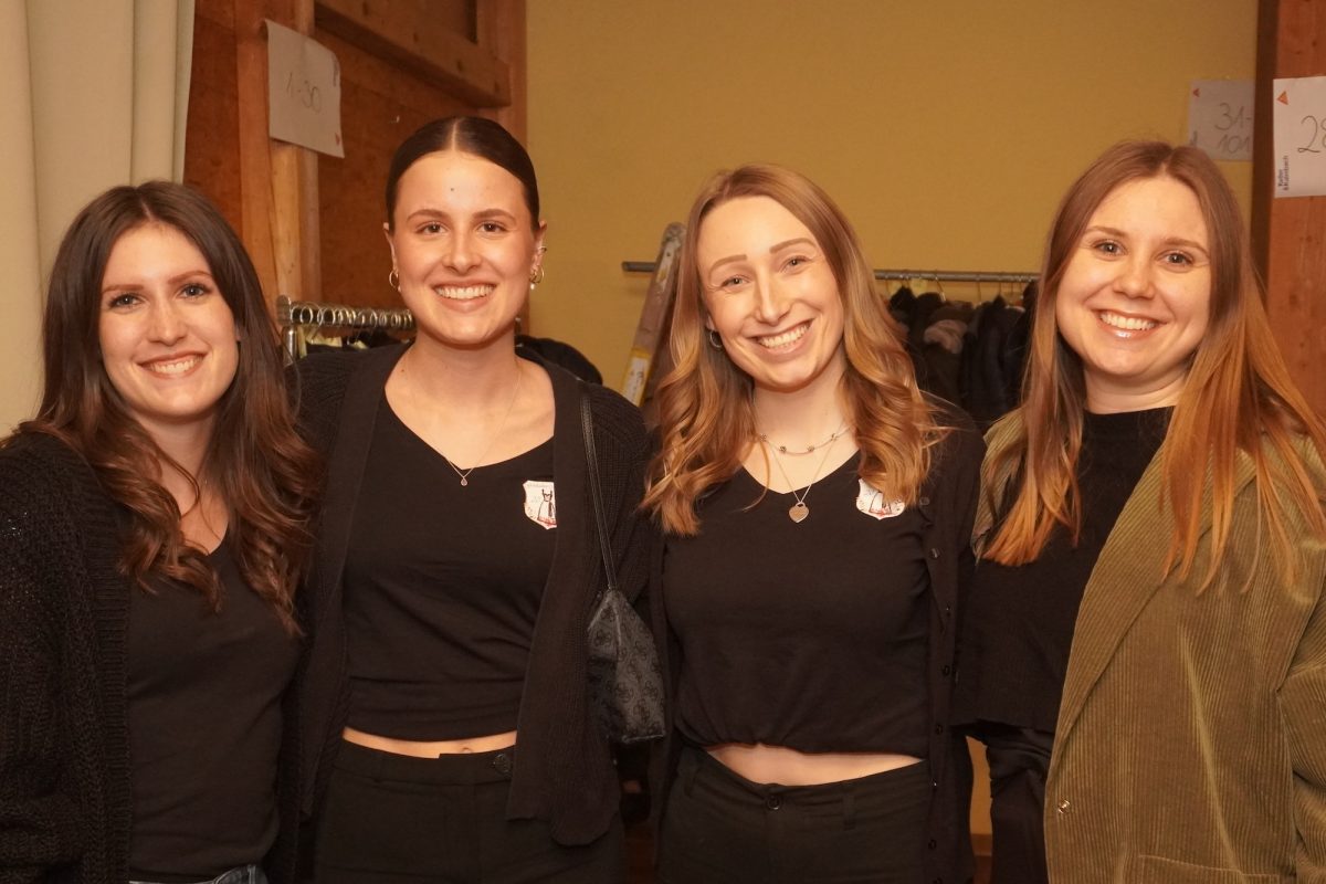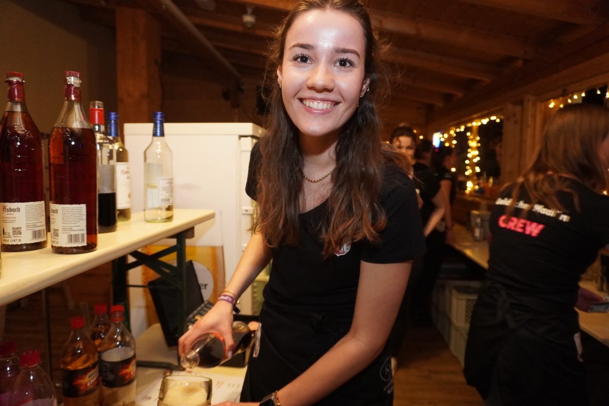 Zeit, um kurz durchzuatmen und selbst ein kleines Gläschen zu genießen, bevor die Party eskaliert! „Nachdem ich zum Vorstand gewählt wurde, war mir zwei Tage später bewusst, dass ich jetzt verantwortlich bin und da war ich schon ein bisserl panisch“, gibt Verena, die Soziale Arbeit studiert, mit entwaffnender Offenheit zu. „Aber Ramona ist einfach eine total gute Unterstützung, ohne sie würde es nicht so gut laufen. Überhaut alle Mädels machen das alles so gut.“ Ramona, genauso fröhlich, pflichtet ihr bei und schwärmt: „Unsere Mädels sind wirklich sensationell. Jede hat doppelte Schichten ohne Murren eingelegt.“ Nach der „Ära Linh“ sprechen beide von der riesigen Herausforderung die Fußstapfen ausfüllen zu können. „Den größten Respekt hatten wir davor den Überblick zu behalten“ so Architekturstudentin Ramona: „Linh hat wirklich jedes Detail im Kopf, während wir bei jedem Punkt überlegen mussten, ob wir es überhaupt brauchen oder ob und gegebenenfalls, von wem es organisiert wird.“ Das Duo ist dankbar sich mit allen Fragen an das lang bewährte Team Linh Ha, Giulia Hiergstetter und Gabriela Saronja wenden zu können, betont Verena: „Wir haben auf jeden Fall gelernt: Unbedingt immer eine Genehmigung einholen, denn ohne sie geht gar nichts.“ Als habe Linh alles gehört, steht sie plötzlich bei ihren Nachfolgerinnen mit den Funksprechern und hilft den beiden sie fachgerecht anzulegen. „Die beiden werden in die Aufgabe hineinwachsen und ihren Weg gehen“, lobt Linh die Neulinge.