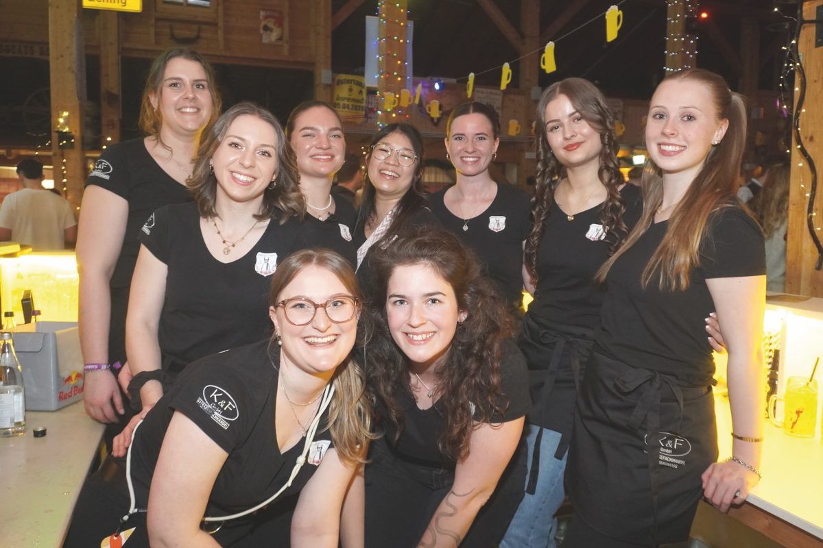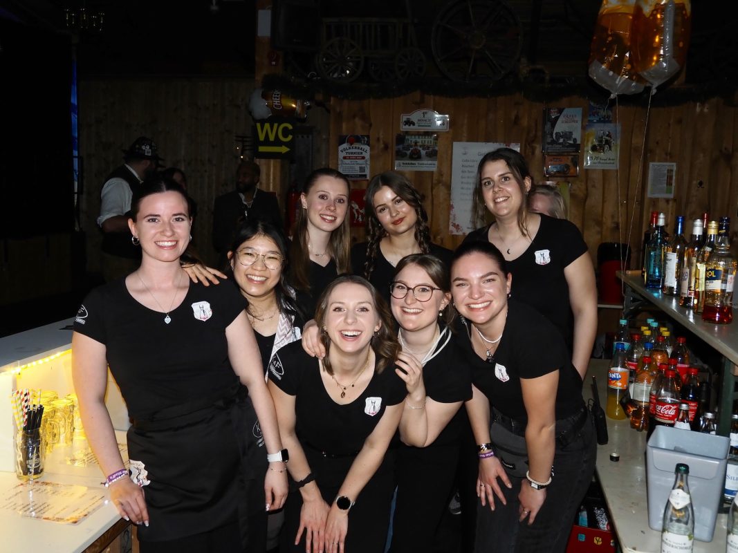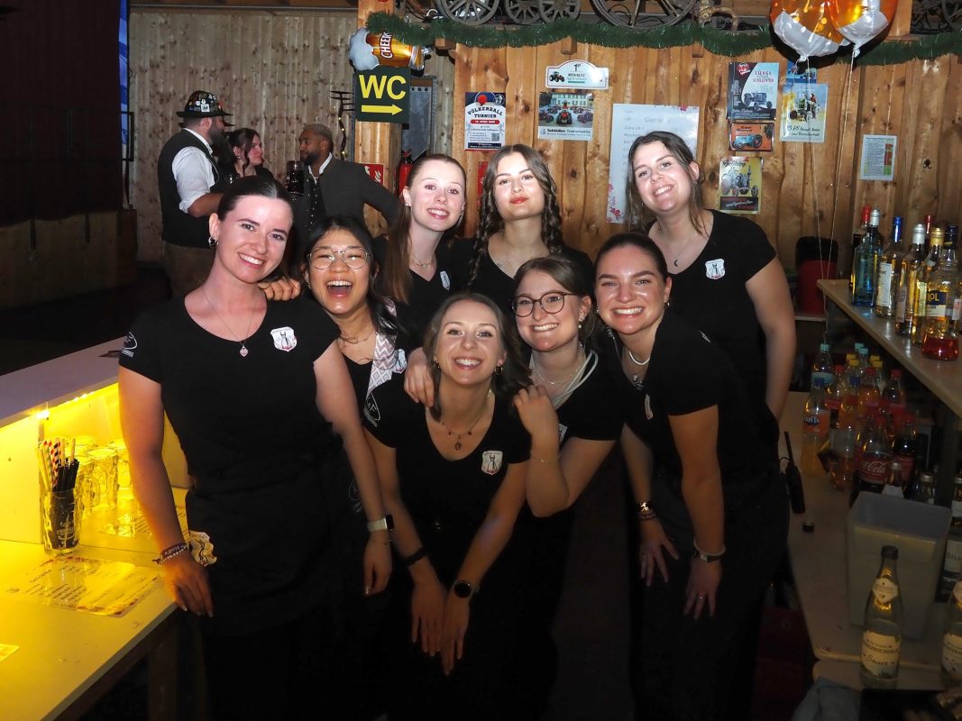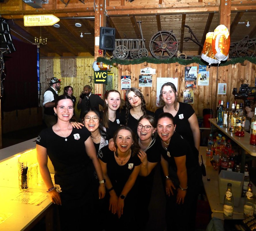 „Wer ko, der ko“ und wenn das „wer“ eine ganze Truppe fescher, charmanter und sympathischer junger Madln ist, passt es ohnehin: „Im Großen und Ganzen bin ich wirklich sehr stolz auf uns“, sagt Verena Bauer, neuer erster Vorstand der Goldacher Madln lachend und blickt sich im Hausler Hof kurz nach Einlass zur Maßenparty um. Ein letzter Check bestätigt: DJ S.M. legt auf, die Beleuchtung passt und die Getränke laufen. Ramona Braunsdorf, die neue Stellvertreterin, strahlt mit Verena um die Wette und stimmt zu: „Ich bin begeistert, wie gut alles funktioniert hat, bin aber auch froh, dass wir uns auf die alte Vorstandschaft im Hintergrund verlassen konnten.“ Währenddessen schlürfen erste Gäste an leckeren Drinks und scannen die Anwesenden im Allgemeinen und den möglichen „Love interest“ im Besonderen mehr oder weniger auffällig ab. Um 21 Uhr ist die Tanz- noch deutlich eher „Talk“- oder gar „Taktierfläche“. Kein Wunder: Wer sich jetzt bewegt, riskiert den Sitz der stundenlang drapierten Frisur und wer will schon vor Mitternacht wie ein Panda nach dem Joggen aussehen?