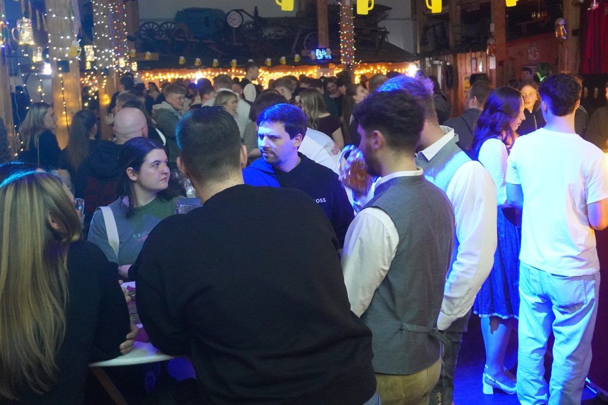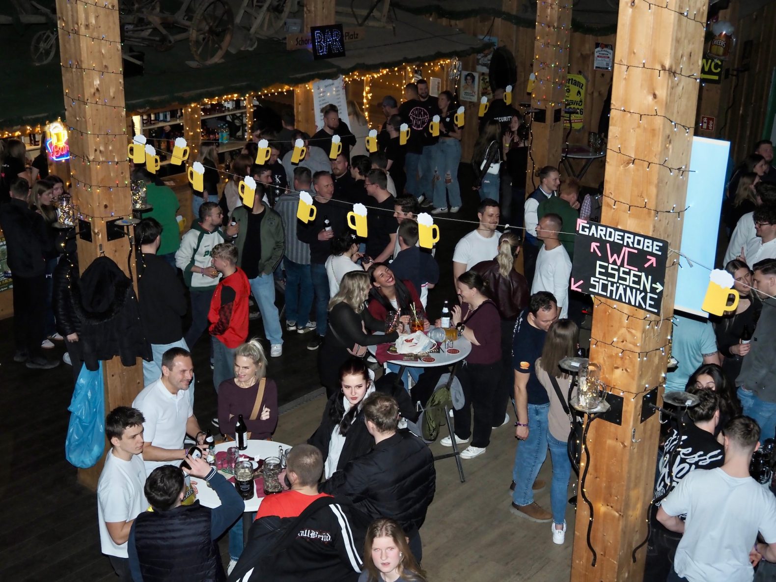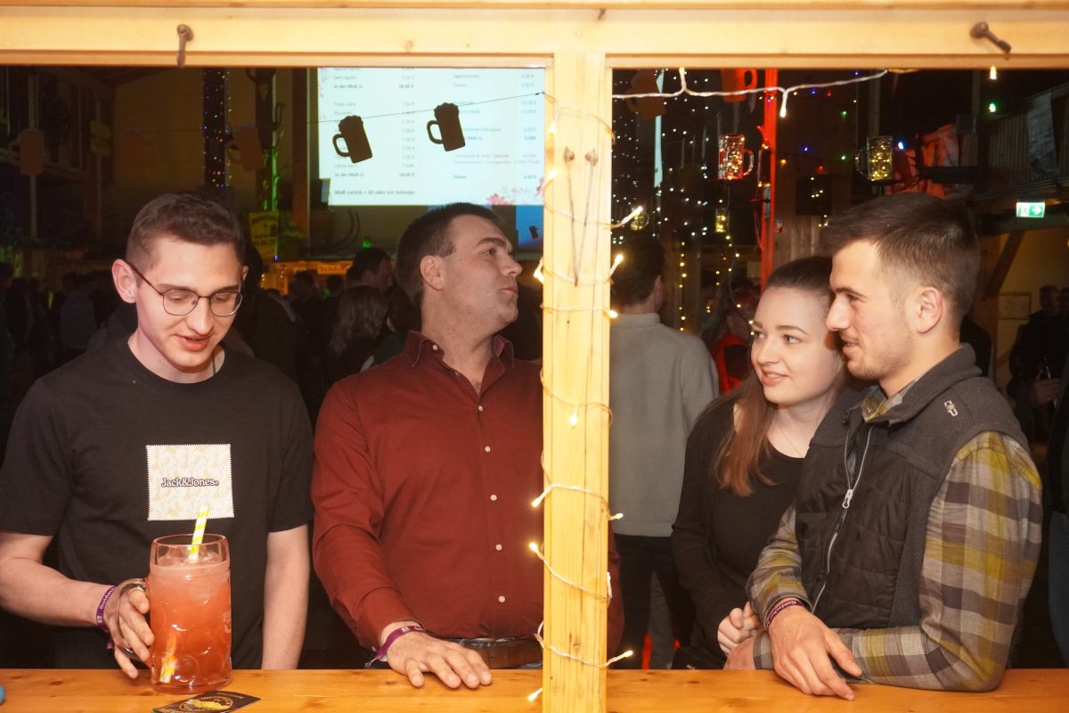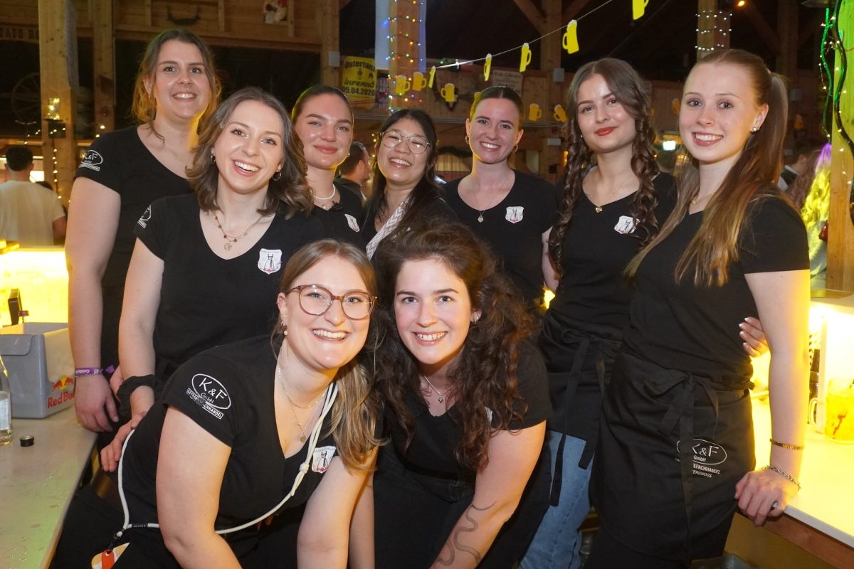„Wer ko, der ko“ und wenn das „wer“ eine ganze Truppe fescher, charmanter und sympathischer junger Madln ist, passt es ohnehin: „Im Großen und Ganzen bin ich wirklich sehr stolz auf uns“, sagt Verena Bauer, neuer erster Vorstand der Goldacher Madln lachend und blickt sich im Hausler Hof kurz nach Einlass zur Maßenparty um. Ein letzter Check bestätigt: DJ S.M. legt auf, die Beleuchtung passt und die Getränke laufen. Ramona Braunsdorf, die neue Stellvertreterin, strahlt mit Verena um die Wette und stimmt zu: „Ich bin begeistert, wie gut alles funktioniert hat, bin aber auch froh, dass wir uns auf die alte Vorstandschaft im Hintergrund verlassen konnten.“ Währenddessen schlürfen erste Gäste an leckeren Drinks und scannen die Anwesenden im Allgemeinen und den möglichen „Love interest“ im Besonderen mehr oder weniger auffällig ab. Um 21 Uhr ist die Tanz- noch deutlich eher „Talk“- oder gar „Taktierfläche“. Kein Wunder: Wer sich jetzt bewegt, riskiert den Sitz der stundenlang drapierten Frisur und wer will schon vor Mitternacht wie ein Panda nach dem Joggen aussehen?