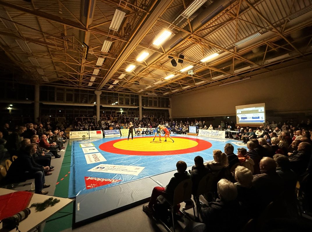 Was für ein Kampfabend in der Hallberghalle! – Die Lokalität war bis auf den letzten Platz gefüllt, die Fans tobten und sorgten für eine Stimmung wie zu besten Bundesligazeiten. Vor dem Kampf stand fest, dass die Hallbergmooser Ringer die Meisterschaft noch aus eigener Kraft erreichen konnten, wenn sie gegen den favorisierten Tabellenführer aus Westendorf mit mindestens zwei Punkten Vorsprung gewannen. Bis zur Halbzeit sah es jedoch alles andere als gut aus, denn nach der ersten Hälfte lag die Heimmannschaft mit 4:14 zurück. Nach der Pause zeigten die SV Siegfried-Ringer jedoch eine beeindruckende Wende und gewannen alle fünf Kämpfe des zweiten Abschnitts. Ahmet Bilici eröffnete die Aufholjagd mit einem souveränen Sieg, wodurch der Rückstand auf 8:14 verkürzt wurde. In der vorentscheidenden Begegnung kippte Maximilian Anthofer seinen Kampf von einem 0:3 zu einem 9:3, woraufhin die Halle förmlich ausrastete und die heimischen Fans die zuvor dominierende Stimmung der Gäste übernahmen. Kristupas Sleiva und Vladislavs Jakubovcis setzten erwartungsgemäß ihre Gegner mit technischer Überlegenheit außer Gefecht, wodurch das Ergebnis auf 18:14 gedreht wurde. Schließlich sicherte Jan Madejczyk im letzten Kampf die entscheidenden zwei Punkte, die den hochdramatischen und sensationellen Sieg gegen einen sehr starken Gegner perfekt machten. Dank einer taktischen Meisterleistung und einer Mannschaft, die an diesem Abend in jeder Begegnung meisterschaftswürdige Leistungen zeigte, konnte das Heimteam nicht nur den verdienten Sieg erringen, sondern auch die Tabellenführung aufgrund des direkten Vergleichs zurückerobern. Für alle Anwesenden war dieser Abend ein einmaliges sportliches Erlebnis, das sicherlich unvergessen bleibt und Legendenstatus birgt.