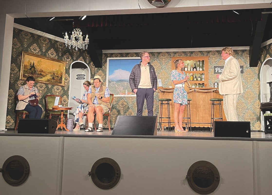 Das Stück erzählt von einer exzentrischen Reisegruppe, deren Schicksal auf einer mysteriösen Vorhersehung beruht. Im Mittelpunkt der Reise stehen Erwin und Luise Müller (Martin Schuster & Kate Eigner). Luise vertraut bei der Buchung ganz auf den Rat der geheimnisvollen Wahrsagerin Madame Ophelia (Sophia Troidl) – eine Entscheidung, die ihren, zu Übertreibungen neigenden Gatten Erwin, vor ungeahnte Herausforderungen stellt. Für viele Lacher sorgte zum einen das Zusammenspiel des Ehepaars Huber: Während Otto (Robert Walter) als schwer beladener „Packesel“ Schwerstarbeit leistet, glänzt Elfriede (Carina Gebhard) als naive Urlauberin, die ihren Gatten mit ihren charmanten Wortverdrehern sichtlich aus der Fassung bringt. Ebenso markant präsentiert sich der selbsternannte Casanova Willibald Schneider (Harald Kindshofer), der unerschütterlich um die Damenwelt buhlt. An seiner Seite, agiert seine Frau Irmgard (Christina Karl), die schusselig-verpeilte Begleiterin, welche zwar stets gefasst wirkt, es aber faustdick hinter den Ohren hat. Zusätzliche Dynamik brachte das Drei-Generationen- Gespann der Familie Knapp/ Schreck an Bord. Der stets besorgte Versicherungsvertreter Hartmut Knapp (Jonas Karl) wittert hinter jeder Welle eine Gefahr, immer unter den strengen Augen von Oma Hannelore Schreck (Gisela Edelmann), die mit der vermeintlichen Inkompetenz ihres Enkels hart ins Gericht geht. Mutter Ernestine (Christine Wimmer) hingegen bereichert die Gruppe mit ihrer lebhaften und direkten Art.