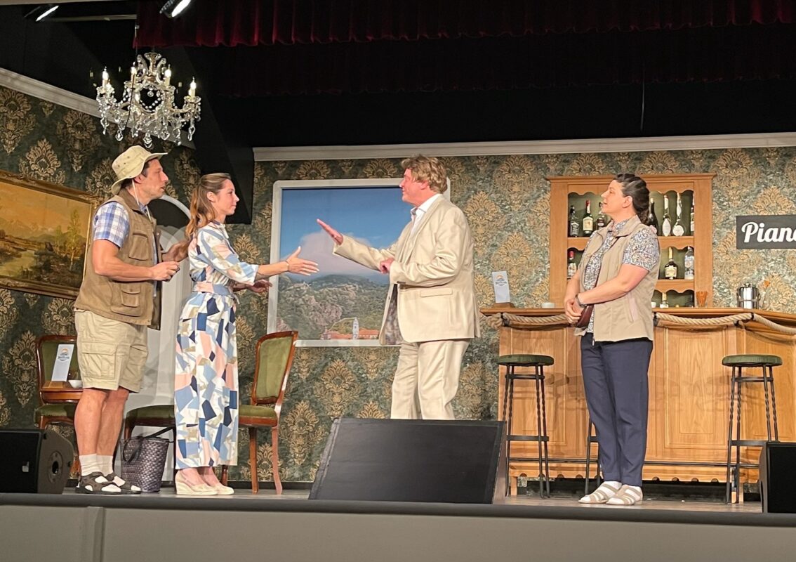 Das Stück erzählt von einer exzentrischen Reisegruppe, deren Schicksal auf einer mysteriösen Vorhersehung beruht. Im Mittelpunkt der Reise stehen Erwin und Luise Müller (Martin Schuster & Kate Eigner). Luise vertraut bei der Buchung ganz auf den Rat der geheimnisvollen Wahrsagerin Madame Ophelia (Sophia Troidl) – eine Entscheidung, die ihren, zu Übertreibungen neigenden Gatten Erwin, vor ungeahnte Herausforderungen stellt. Für viele Lacher sorgte zum einen das Zusammenspiel des Ehepaars Huber: Während Otto (Robert Walter) als schwer beladener „Packesel“ Schwerstarbeit leistet, glänzt Elfriede (Carina Gebhard) als naive Urlauberin, die ihren Gatten mit ihren charmanten Wortverdrehern sichtlich aus der Fassung bringt. Ebenso markant präsentiert sich der selbsternannte Casanova Willibald Schneider (Harald Kindshofer), der unerschütterlich um die Damenwelt buhlt. An seiner Seite, agiert seine Frau Irmgard (Christina Karl), die schusselig-verpeilte Begleiterin, welche zwar stets gefasst wirkt, es aber faustdick hinter den Ohren hat. Zusätzliche Dynamik brachte das Drei-Generationen- Gespann der Familie Knapp/ Schreck an Bord. Der stets besorgte Versicherungsvertreter Hartmut Knapp (Jonas Karl) wittert hinter jeder Welle eine Gefahr, immer unter den strengen Augen von Oma Hannelore Schreck (Gisela Edelmann), die mit der vermeintlichen Inkompetenz ihres Enkels hart ins Gericht geht. Mutter Ernestine (Christine Wimmer) hingegen bereichert die Gruppe mit ihrer lebhaften und direkten Art.