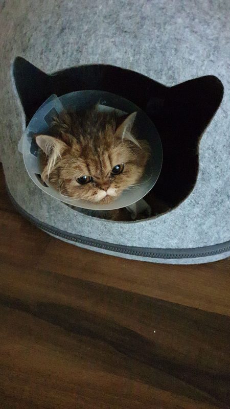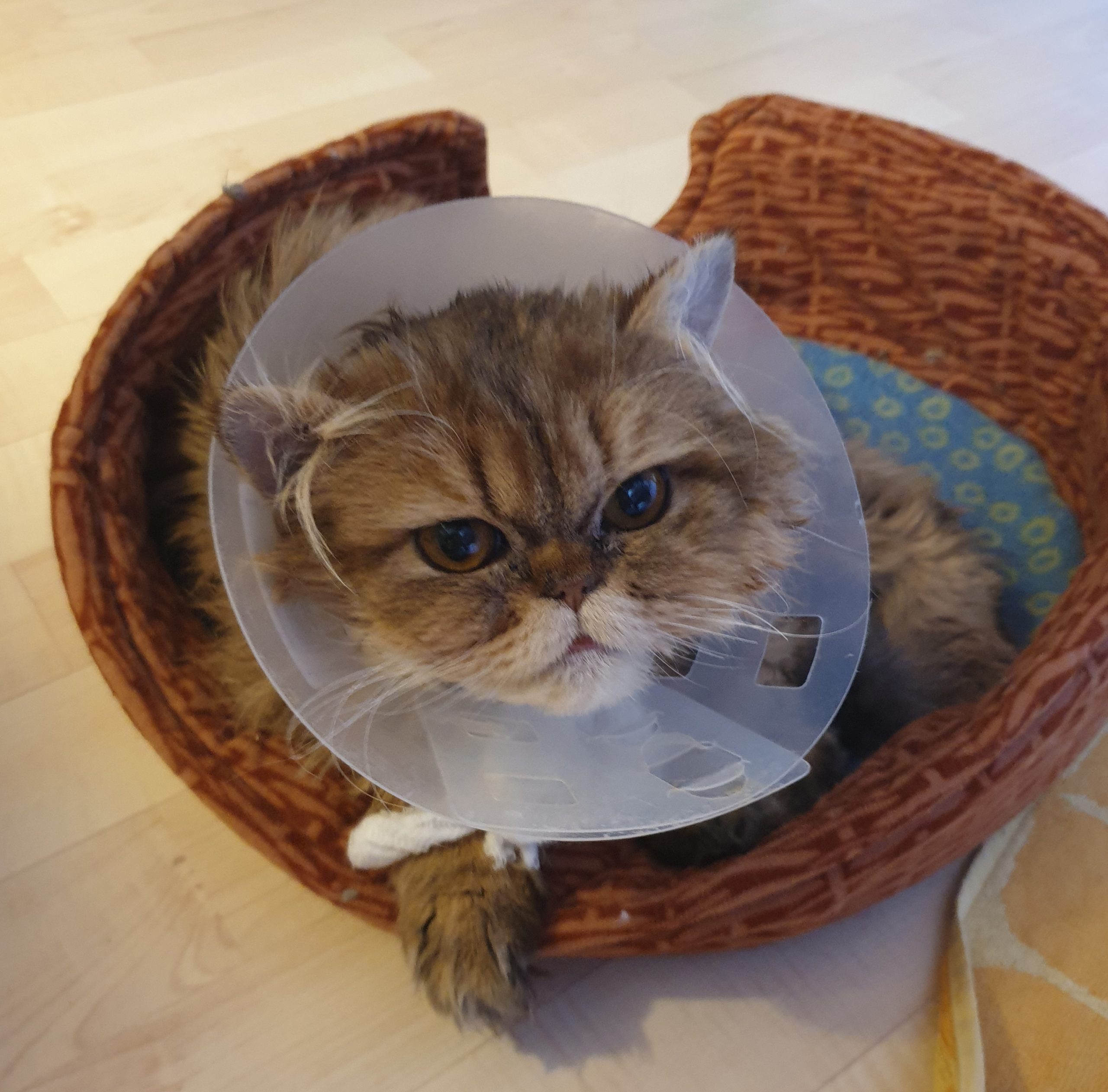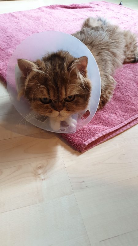 Katzenfreunde werden es nachfühlen können, wie erleichtert die Wörles waren, als am Dienstag der erlösende Anruf kam: Kater Bobby war in der Tierarztpraxis von Frau Dr. Küster abgegeben worden, unterkühlt und ziemlich angeschlagen. Bobby hatte Glück, er wurde fachgerecht versorgt und hat alles heil überstanden. Auch wenn er noch eine Weile mit einer Halskrause herumlaufen muss, so geht es ihm inzwischen so gut, dass er sich wieder dem normalen Katzenalltag widmen kann.