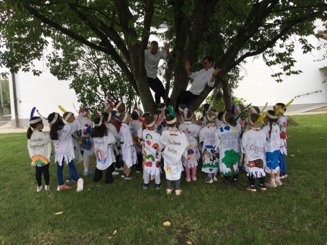 Am 18.07. war es endlich so weit: Ausgestattet mit selbstgemachter Ausrüstung zogen die kleinen „Indianer“ ins nahegelegene Birkenecker Wäldchen. Dort wartete ein ganz besonderes Abenteuer auf sie: Die Suche nach dem lange verschollenen Schatz eines alten Häuptlings. Ein kurzer Zwischenstopp bei einem „Essenslieferanten“ bescherte den Kindern frisches Obst und kühles Eis – genau das Richtige zur Stärkung vor der großen Schatzsuche.