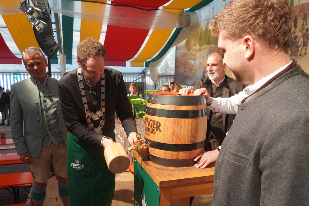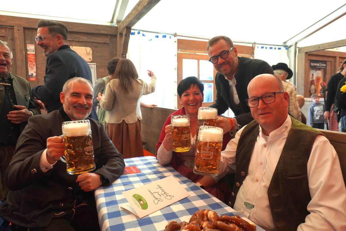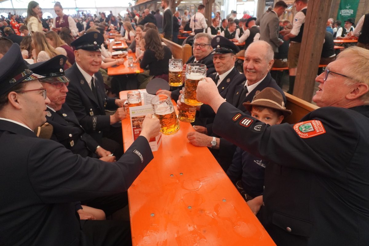 Die Dirndl sind frisch aufgebügelt, die Lederhos´n sitzen knackig,  die Sonne strahlt, als sei es ihr letztes Mal. Mehr geht nicht zum Auftakt der Hallberger Wiesn. Traditionell treffen sich von der Freiwilligen Feuerwehr Hallbergmoos, über die Mooskoimroaser, dem Arbeitskreis Partnerschaft Hallbergmoos-Predazzo, viele Gemeinderatsmitglieder bis hin zu Kameraden der Freiwilligen Feuerwehr Goldach zahlreiche Vereine auf dem Rathausplatz, um sich ganz „zivilisiert“ einen kleinen Hopfen-Aperitif zu genehmigen, bevor sich alle zum Umzug zu formieren. Es ist ein kleiner Vorgeschmack auf das, was in den nächsten Tagen reichlich fließt. Zunächst aber gibt d´Liesl das gemächliche Tempo vor – für den einen oder anderen ein wenig zu gemütlich, denn die Kehlen trocknen während des zehn Minuten langen Marschs in Machgeschwindigkeit aus und können locker mit der Saharawüste konkurrieren. Entsprechend zügig marschieren rund 1300 zur zünftigen Musi hinter der überhundertjährigen Dame her. Im Zelt schnappt sich Rathauschef Benjamin Henn nach einem Begrüßungsmarathon Schlegel, Hammer und Zapfwerkzeug und schlägt kräftig zu: „O´zapft is!“ Unter den Festbesuchern überzeugt sich auch der promovierte Braumeister Stefan Kreisz, Vorsitzender der Geschäftsführung der Privatbrauerei Erdinger Weißbräu Werner Brombach GmbH, von der Güte des Getränks, genau wie das frisch gekürte Wiesnmadl Sophie Zeilhofer, die in den kommenden Tagen “ihren Traum lebt”: „Es übertrifft alles, was ich mir vorher vorgestellt habe. Es ist unglaublich!“ Heute geht´s für Sophie weiter mit der bayerischen Glückseligkeit, dazu spielen Z´ruck zu Dir – ein Garant für Party-Eskalation pur! Lesen Sie weitere Fakten „warum, wer und wieso überhaupt“, in unserer nächsten Print-Ausgabe am 30.04.26.