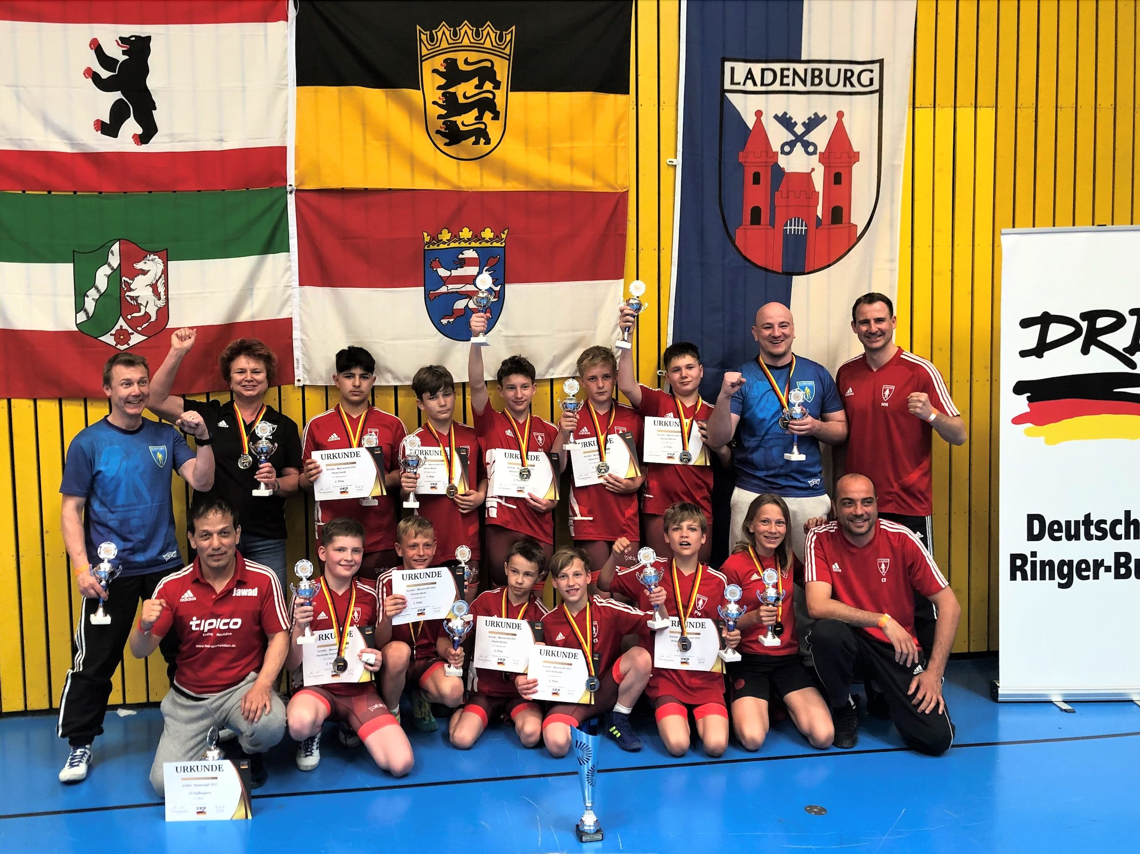 Bei der Deutschen Mannschaftsmeisterschaft der Schüler am 13. und 14. Mai, die der nordbadische ASV Ladenburg zusammen mit dem KSV Schriesheim ausrichtete, gingen 13 Teams an den Start.