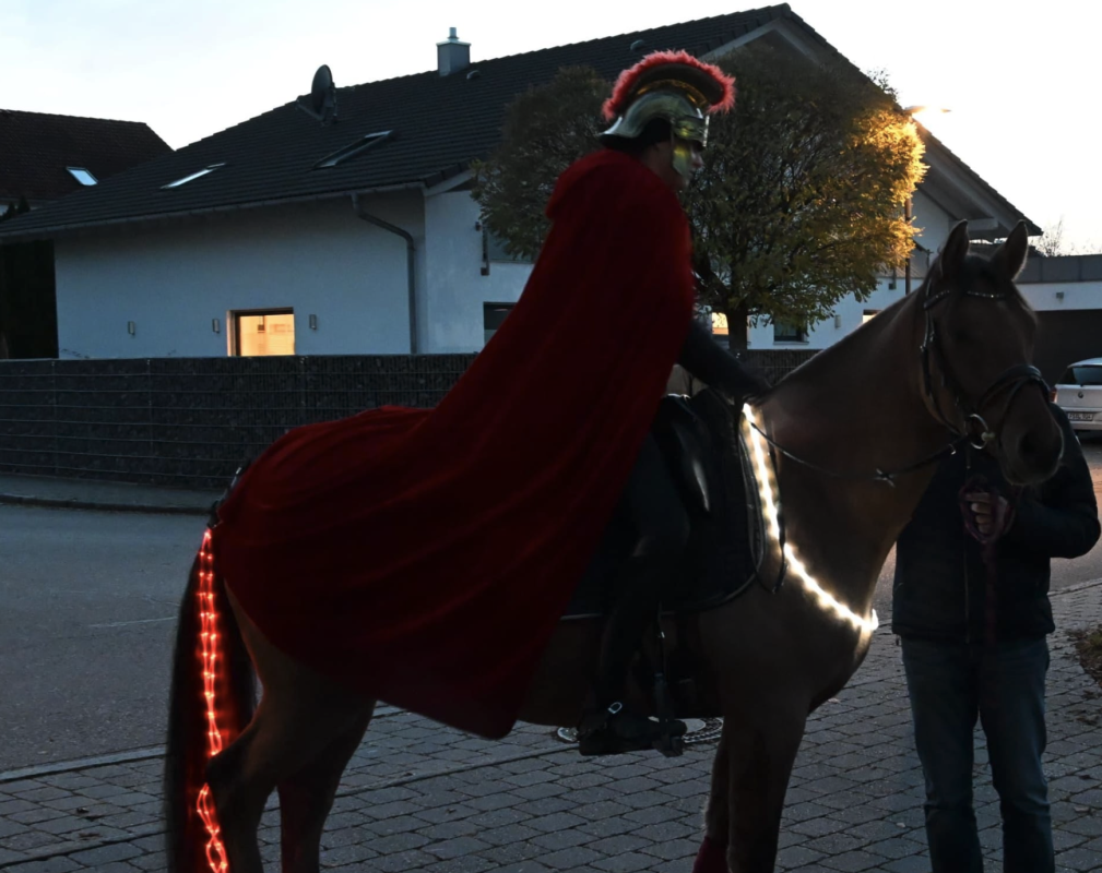 Nach vielen guteinstudierten Laternenliedern und einem kleinen Schauspiel der Vorschüler, kam Soldat Martin zum Laternenfest im Kindergarten Wolkenschlösschen auch dieses Jahr auf seinem Pferd angeritten und teilte, trotz milder Temperaturen, seinen Mantel mit dem armen Bettler. Den Kindergartenkindern wurden somit die Solidarität und das Teilen gezeigt, welche für das gesellschaftliche Miteinander groß von Bedeutung sind. Auch das Thema Nachhaltigkeit wurde durch die aus Milchkarton gebastelsten Laternen dargestellt. Selbstgemachter Punsch und Martinsgänse rundeten das Fest ab und machte es zu einem unvergesslichen Event für die Kleinen.