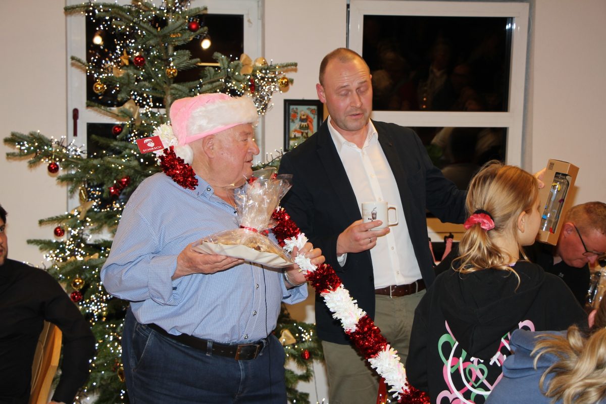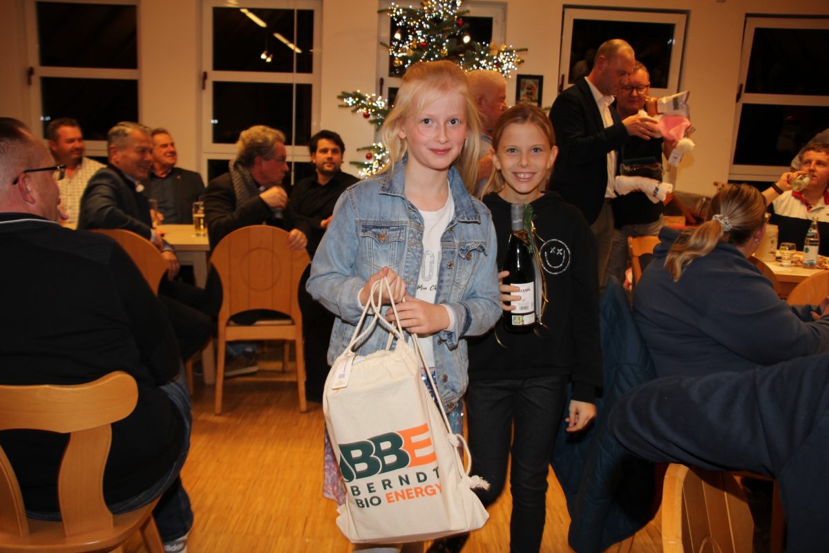 Die Meinung war einhellig: „So voll war’s noch nie!“ Die Plätze im Saal reichten nicht aus und es mussten noch Bänke dazugestellt werden, um die vielen Gäste unterzubringen, die bei der Christbaumversteigerung der Goldacher Feuerwehr dabei sein wollten. Die Feuerwehrler sind es gewöhnt, Probleme zu lösen und so hatten am Ende auch alle einen Sitzplatz, als gegen 17.30 Uhr die Versteigerung begann. In bewährter Weise sorgte Sepp Grichtmair, Ehrenvorstand und erfolgreicher Auktionator seit mehr als 40 Jahren, gemeinsam mit Robert Lackermeier, 1. Vorstand des FW-Vereins, mit Redegewandtheit, Humor und gelegentlich mit leichtem Nachdruck dafür, dass die vielen Sachspenden gegen einen eindrucksvollen Gegenwert in Euros einen Besitzer fanden. Die Anzahl der Preise war immens und dafür geht ein großes Dankeschön an die großzügigen Spender! Dies waren vor allem Geschäfte, Restaurants und Firmen aus dem Ort und der näheren Umgebung. Zu ersteigern gab es viel Gutes zum Essen, darunter Schweinshaxen, Wammerl, Plätzchen, Rucksäcke und Taschen mit Inhalt, auch Werkzeug, Spielsachen und jede Menge Getränke in Flaschen oder Goaßmassn im Bierkrug. Es gab Gutscheine für Friseurbesuche, für die Autowerkstatt oder für ein feines Essen. Absolute Renner waren ein Kalender, der freizügige Ein- und Ansichten bot, und ein Ticket für ein FC-Bayern Spiel. Die beiden Mädels Sofia und Maria waren flink unterwegs, sie brachten die Waren zu den Bietern und die Scheine zum Kassier. Schwierig für den Sepp war, dass offensichtlich die „60“ im Raum tabu war – FC-Bayern-Fans wissen warum – und so muss er ein bisschen schwurbeln, wenn tatsächlich jemand 60 Euro bieten wollte. Er machte es aber so geschickt, dass kaum einer merkte, dass er am Ende mehr zahlte als er eigentlich wollte. Die Gebote waren generös, wusste doch jeder, dass alles, was eingenommen wird, dem Verein bzw. der FW Goldach zugutekommt.