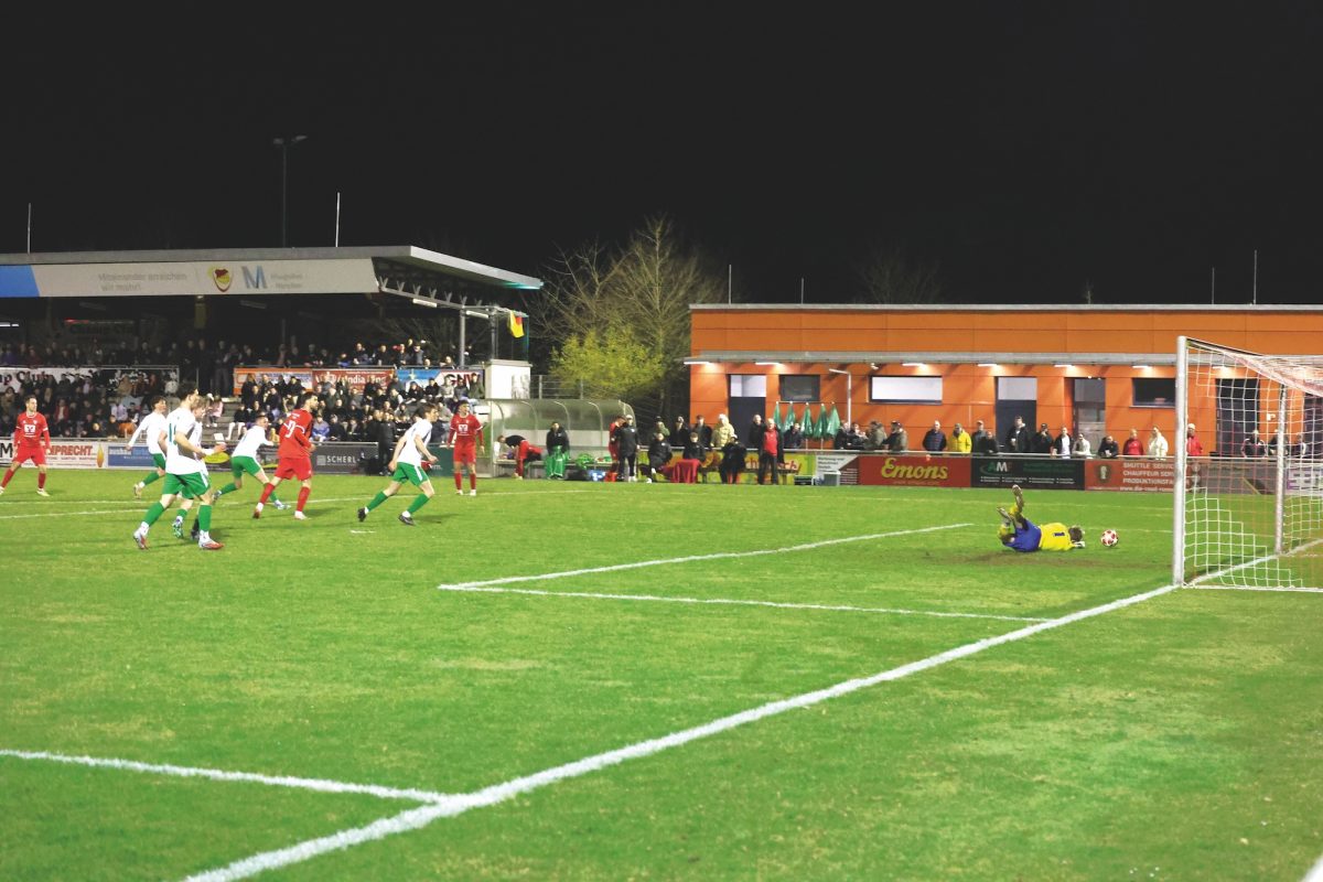 David Küttner (ganz links) erzielt das 1:0 im Stadion am Airport