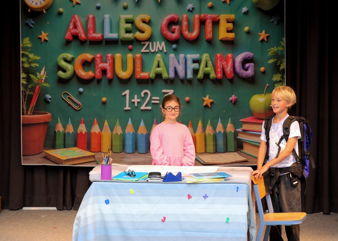 Für Begeisterung sorgte ein Theaterstück, das ältere Schüler für die Schulanfänger einstudiert hatten: Emma überzeugte als Lehrerin mit einem freien, souveränen Auftritt, Samuel spielte den Schüler, und Max aus der 4a brachte als Glückskäfer Glück und Heiterkeit auf die Bühne. Bereits in den Ferien hatten die Kinder eifrig dafür geprobt. Musikalisch begleitet wurde die Feier von einem Lied der Klasse 2b, das die neuen Erstklässler mit viel Applaus bedachten. Mit Schultüten, neuen Klassenkameraden und viel Vorfreude begann für die 98 ABC-Schützen ein neuer Lebensabschnitt – ihr erster Schultag an der Grundschule.